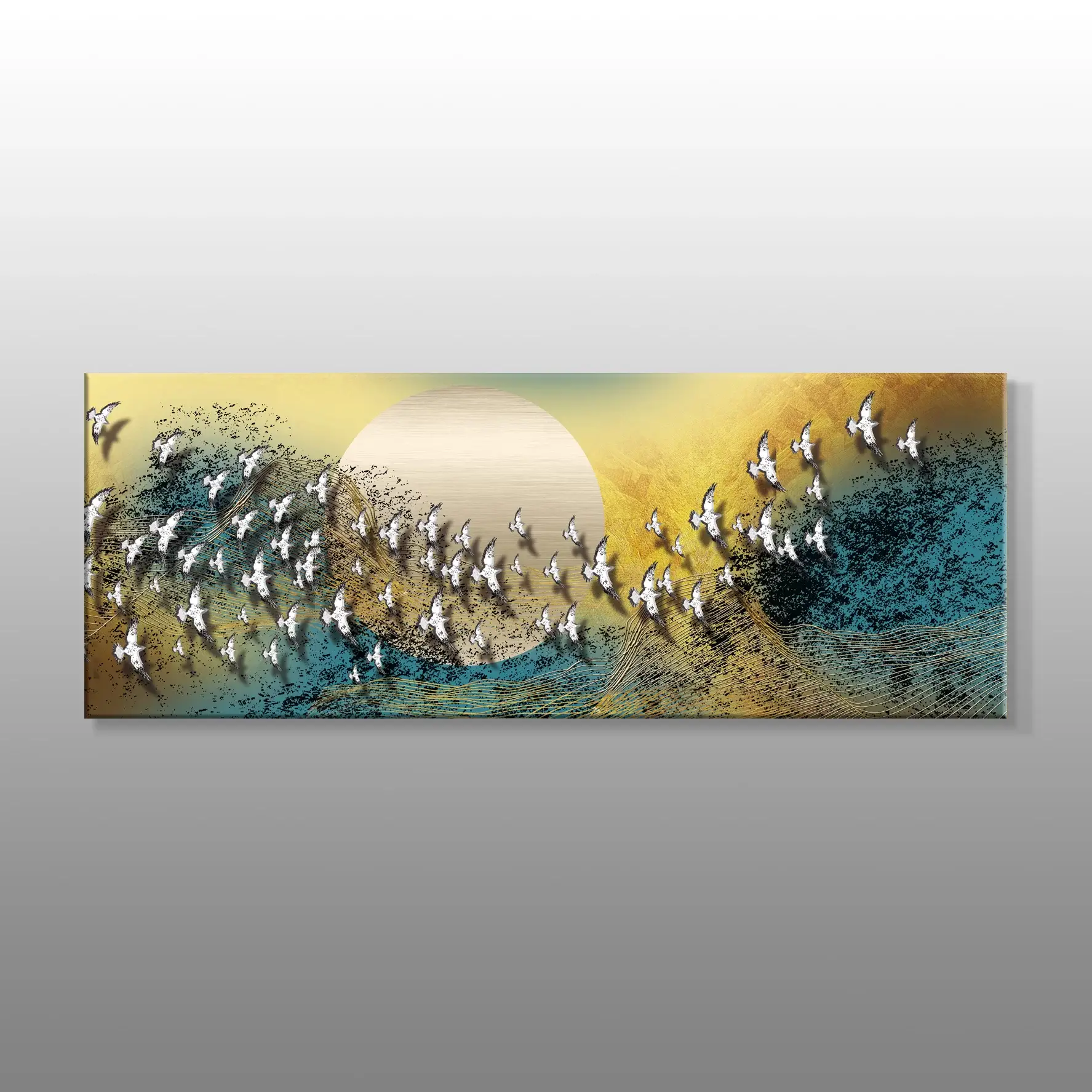 Altın Ay Ve Kuşlar Soyut Kanvas Baskı Tablo