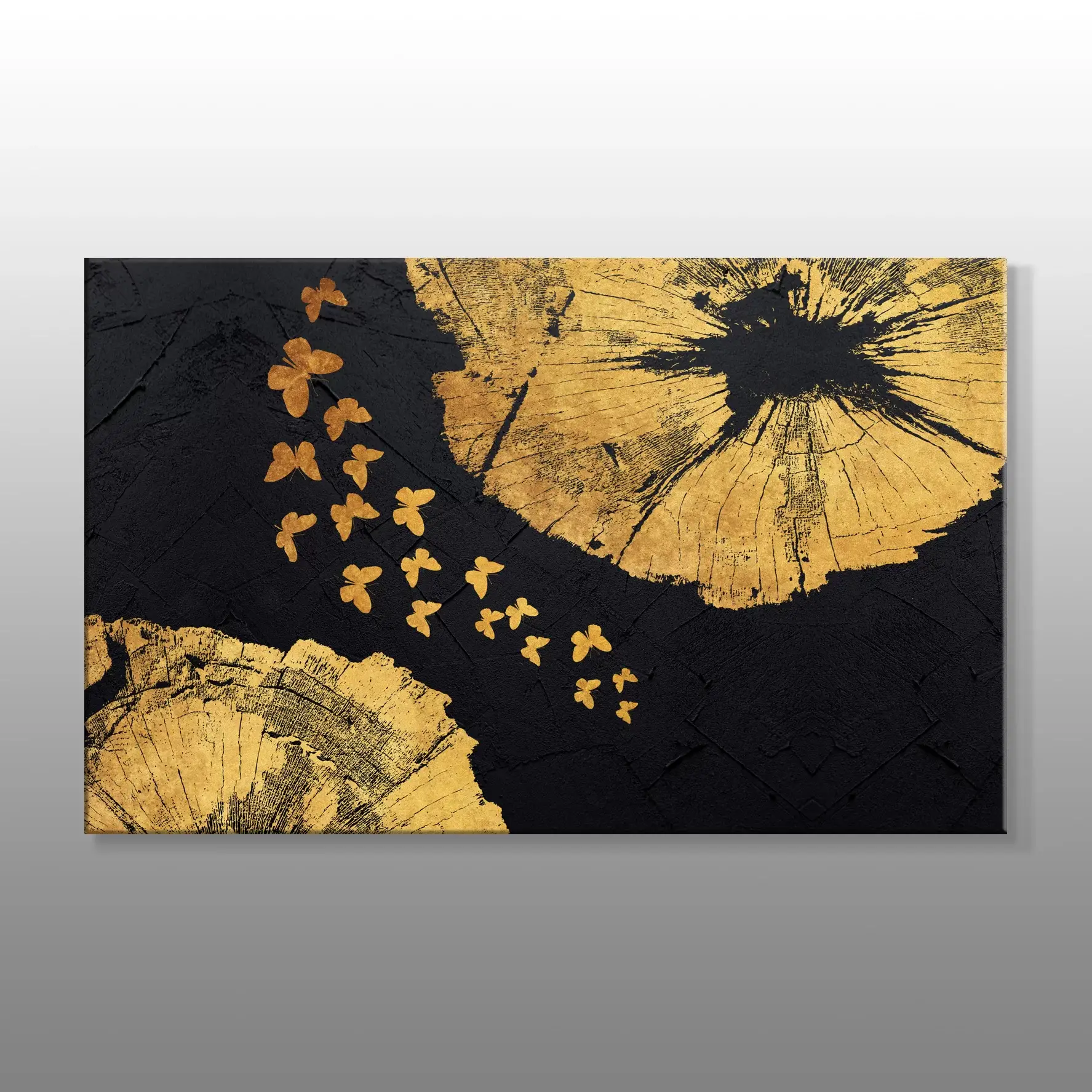 Altın Kelebekler Ve Şekiller Soyut Kanvas Baskı Tablo