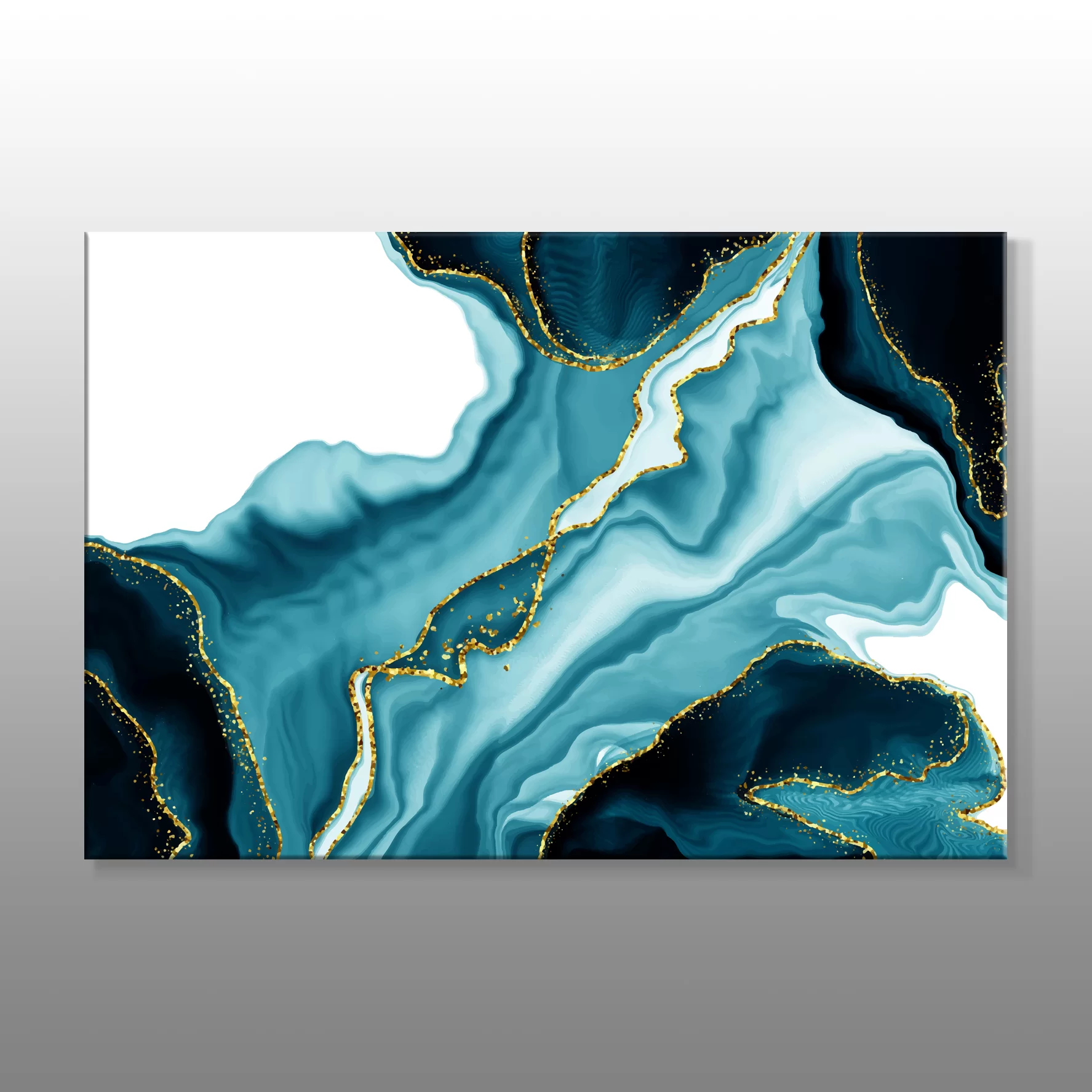 Altın Ve Mavilerin Karışımı Soyut Kanvas Baskı Tablo