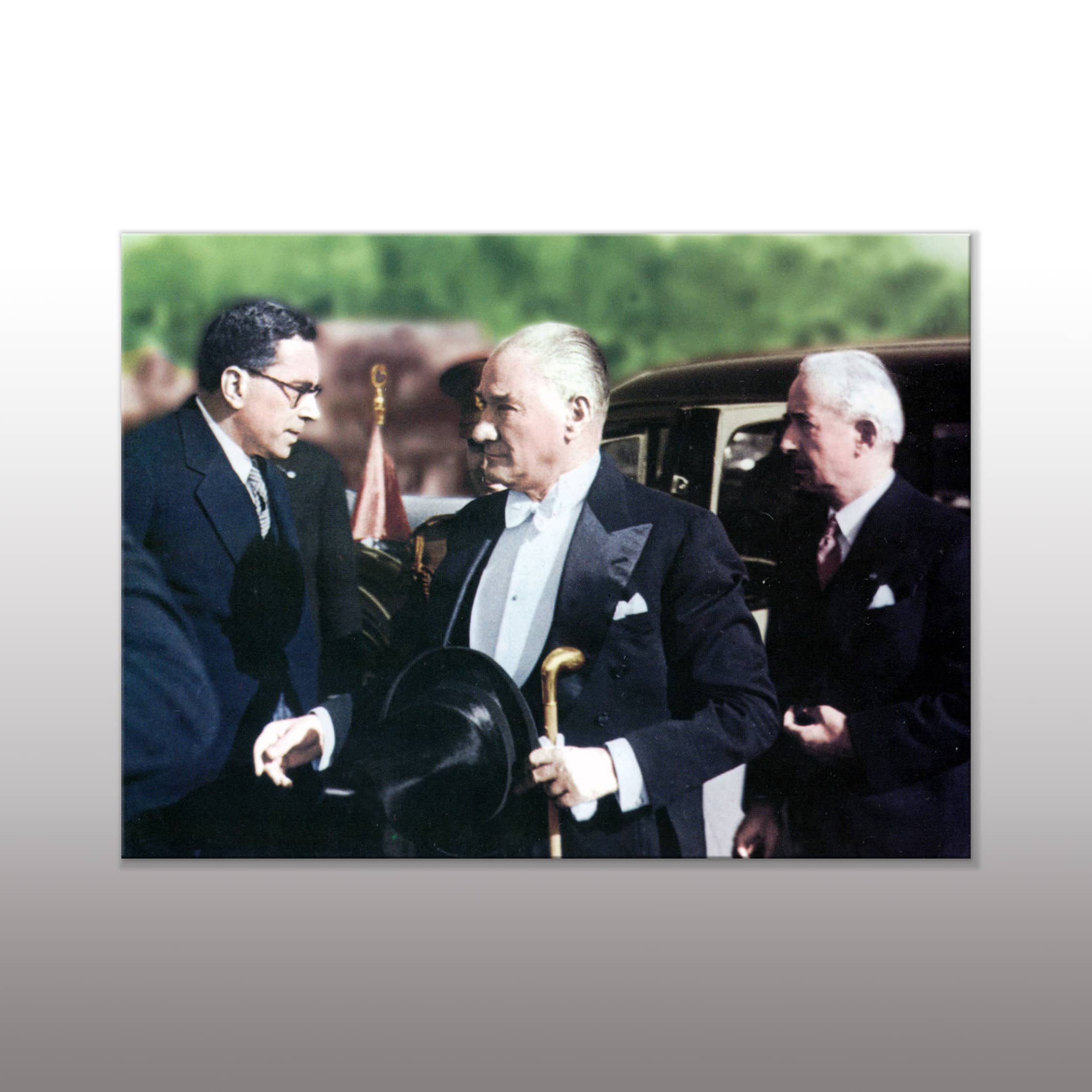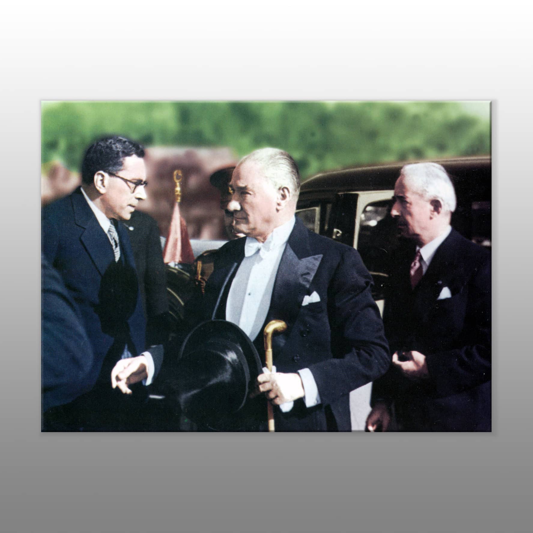 Atatürk fotoğrafları, Türkiye Cumhuriyeti’nin kurucusu ve modernleşmenin mimarı Mustafa Kemal Atatürk'ün hayatına ve vizyonuna dair birçok önemli anı ölümsüzleştirir. Özellikle, Atatürk’ün arabadan indiği anı yansıtan fotoğraflar, onun halka olan yakınlığını ve halkla olan ilişkisini sembolize eder. Bu fotoğraf karelerinde, Atatürk’ün zarif duruşu, kendine güveni ve kararlılığı net bir şekilde gözlemlenebilir. Arabadan inerken sergilediği duruş, liderlik vasıflarının ve kendine has karakterinin altını çizer. Her detay, Atatürk’ün halkıyla olan bağını güçlendirirken, aynı zamanda dönemin sosyal ve siyasi atmosferini de yansıtır. Atatürk'ün arabadan indiği bu an, yalnızca bir fotoğraf değil, aynı zamanda tarihsel bir anıdır. Bu kareler, genç Türkiye Cumhuriyeti’nin modern yüzünü ve Atatürk’ün bu süreçteki rolünü gözler önüne serer. Cumhuriyet’in kurulmasından sonra, Atatürk’ün yaptığı geziler ve halkla olan buluşmaları, ona olan sevgi ve saygıyı arttırmıştır.