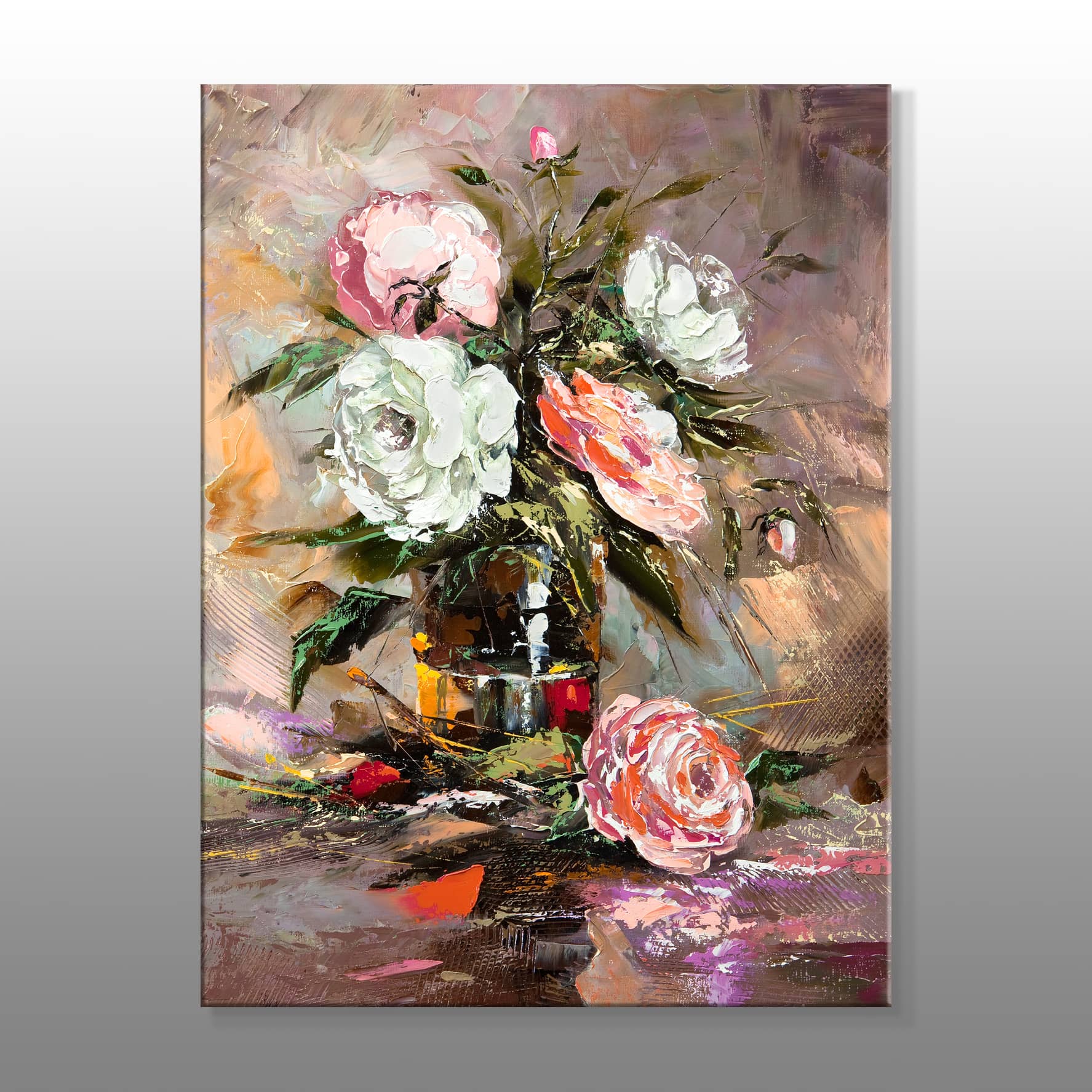 Beyaz-Pembe Vazo Çiçekleri Kanvas Baskı Tablo