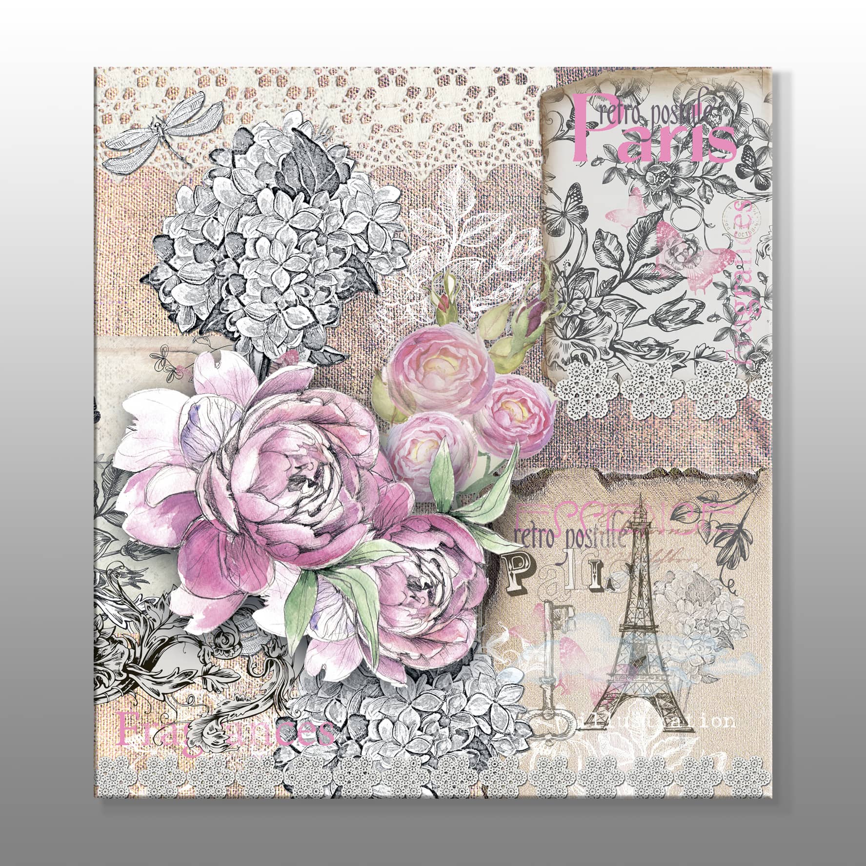 Eyfel Kulesi Ve Çiçekler Kanvas Baskı Tablo