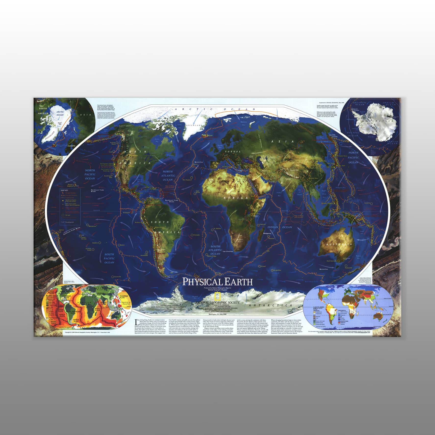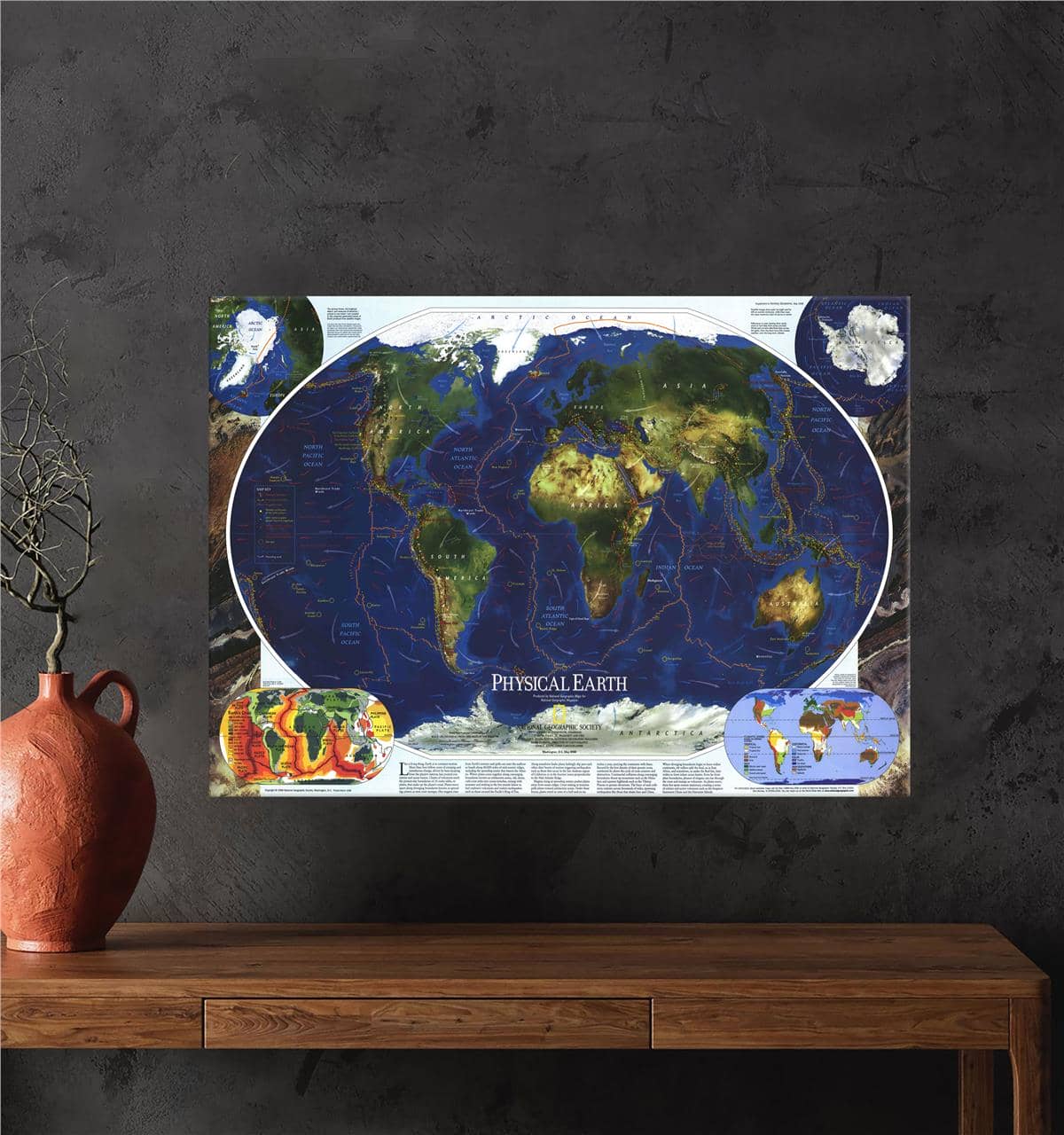 Fiziki Dünya Haritası Kanvas Baskı Tablo