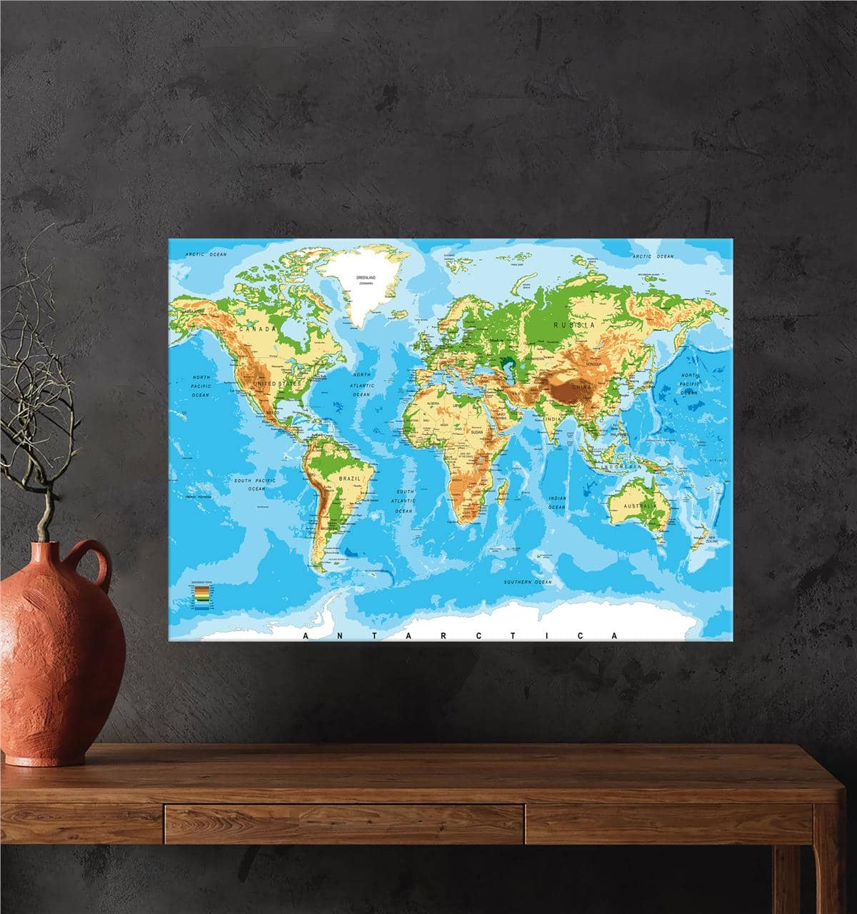 Fiziki Harita Kanvas Baskı Tablo