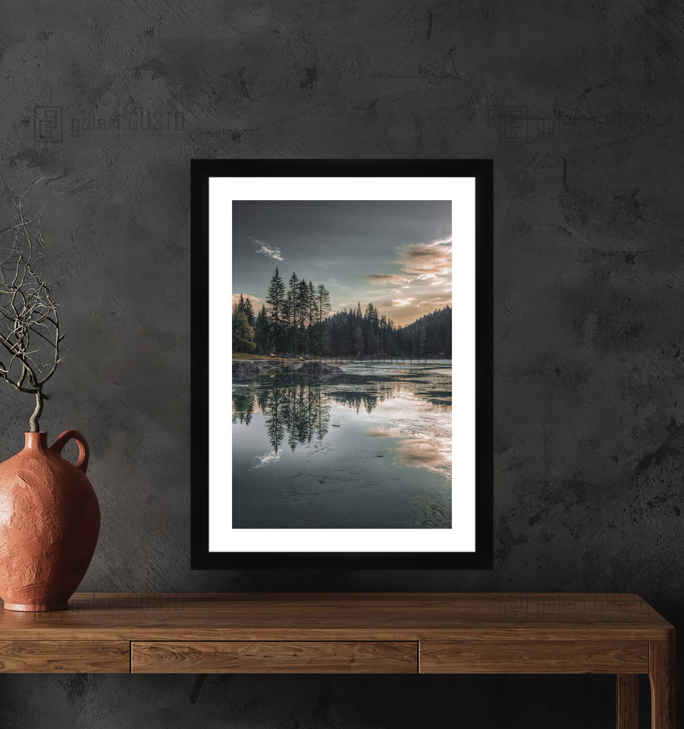 '50 gr/m² Mat Kuşe Kağıda Baskı Yapılmıştır. 2mm Normal Cam 2cm Siyah Lamine Çerçeve