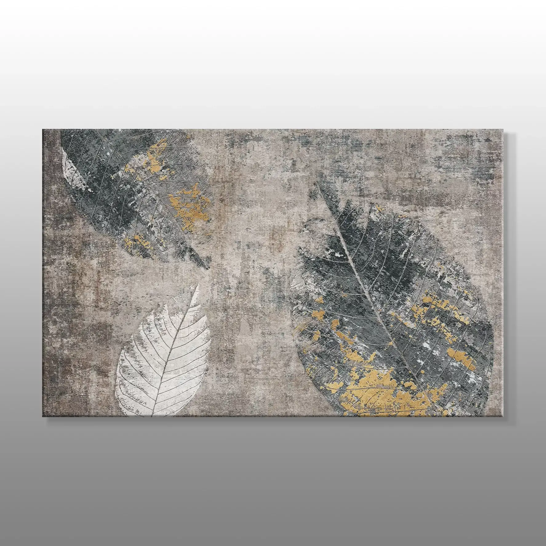 Gri Yaprak Detayları Soyut Kanvas Baskı Tablo