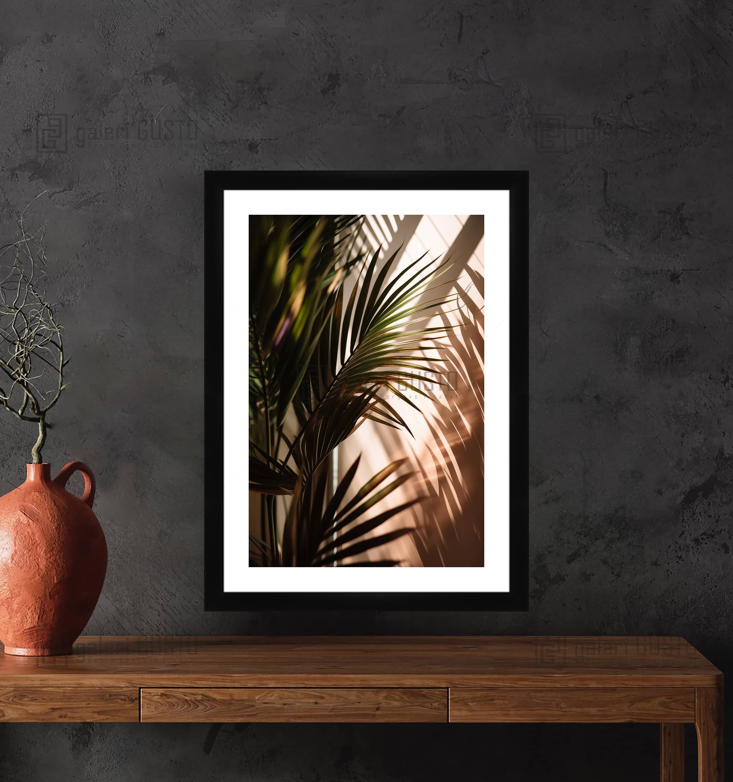 Güneş Hüzmesinde Palmiye Dalları Çerçeveli Poster