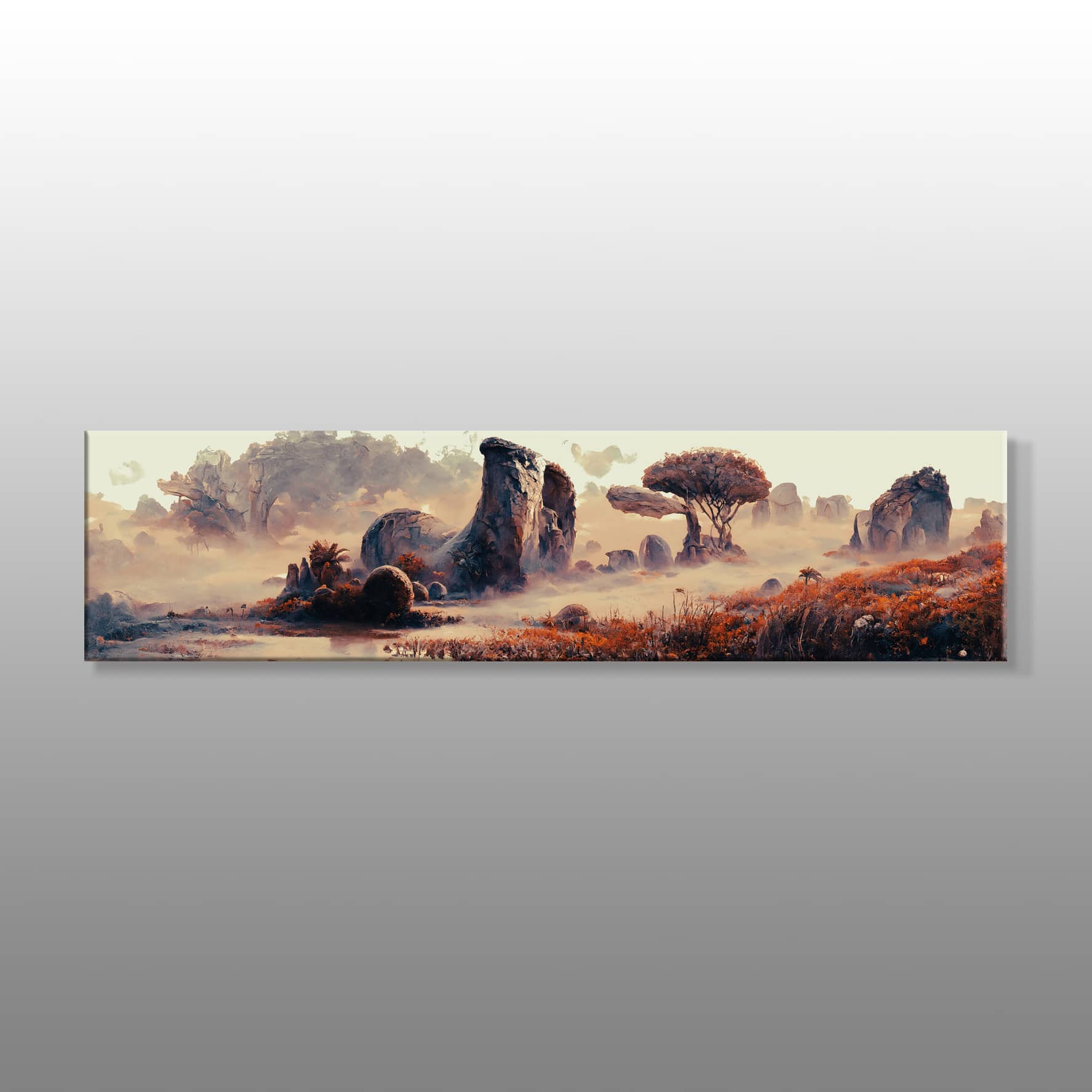 Korku Dolu Yer Kanvas Baskı Tablo ürünü, izleyicileri derin bir gerilim ve heyecan içerisine itmeyi başarırken çarpıcı ve etkileyici bir sanat eseridir. Aynı zamanda bu tablo, gizem ve korkunun sanatsal bir temsilini gösterirken hem düşündürücü hem de etkileyici bir atmosfer oluşturur. Tablonun merkezinde ise ürkütücü ve karanlık bir yer tasvir ediliyor. Yoğun sis ve gölgelerle çevrili bir atmosferde hem içine çeken hem de izleyicilerde merak uyandıran bir ortam sunuyor. Dramatik ışıklandırmalar ve karanlık renklerle tabloya gerilim ve derinlik katıyor. Böylece izleyicilerin tablodan gözlerini alamamasını sağlıyor. Galeri Gusto’nun merak uyandırıcı bu eseri, sağladığı atmosfer ile yaşam alanlarına mistik bir hava katmaya hazır.