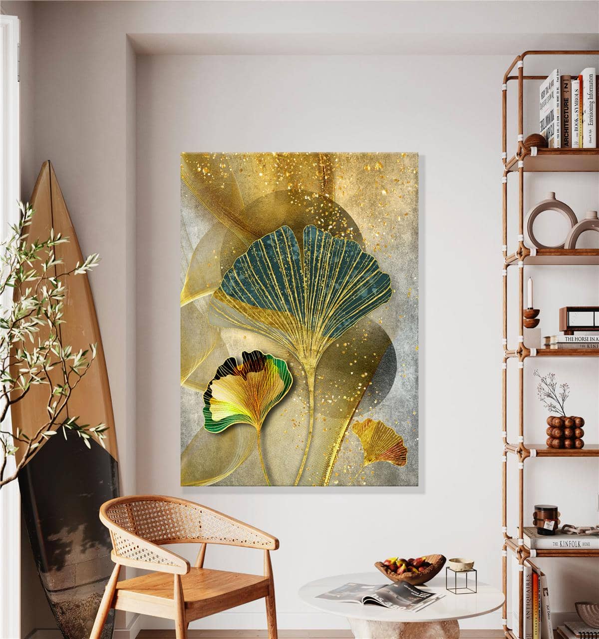 Mabet Yaprağı Ve Altın Işıltılar Kanvas Baskı Tablo