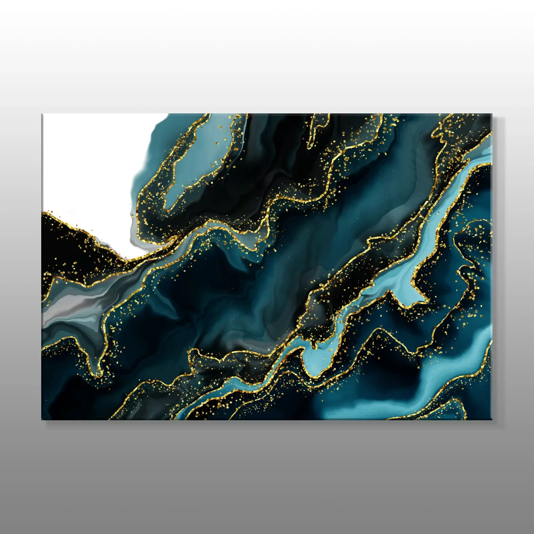 Mavi-Altın Titreşim Dalgaları Soyut Kanvas Baskı Tablo