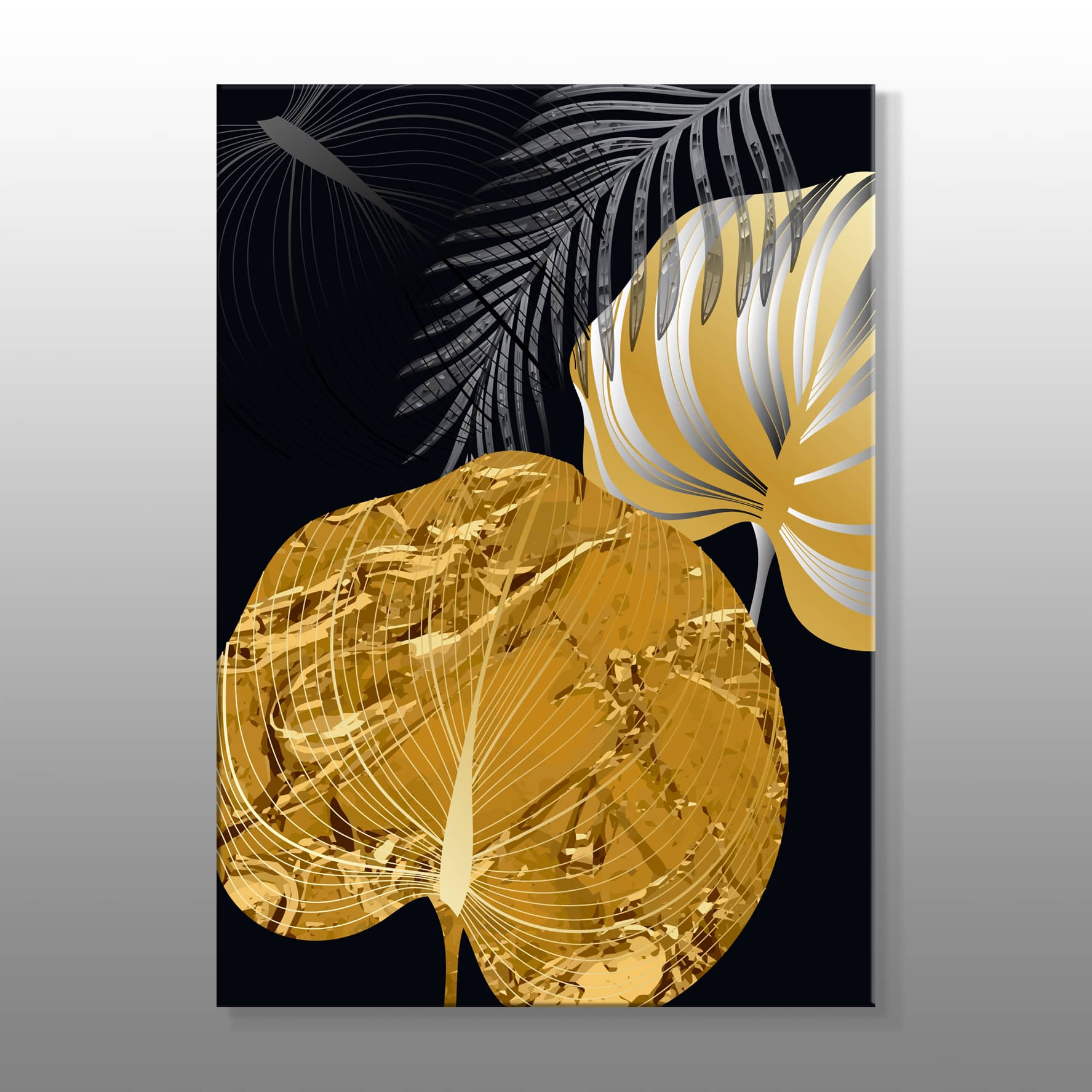 Minimal Altın Detaylı Yapraklar Kanvas Baskı Tablo