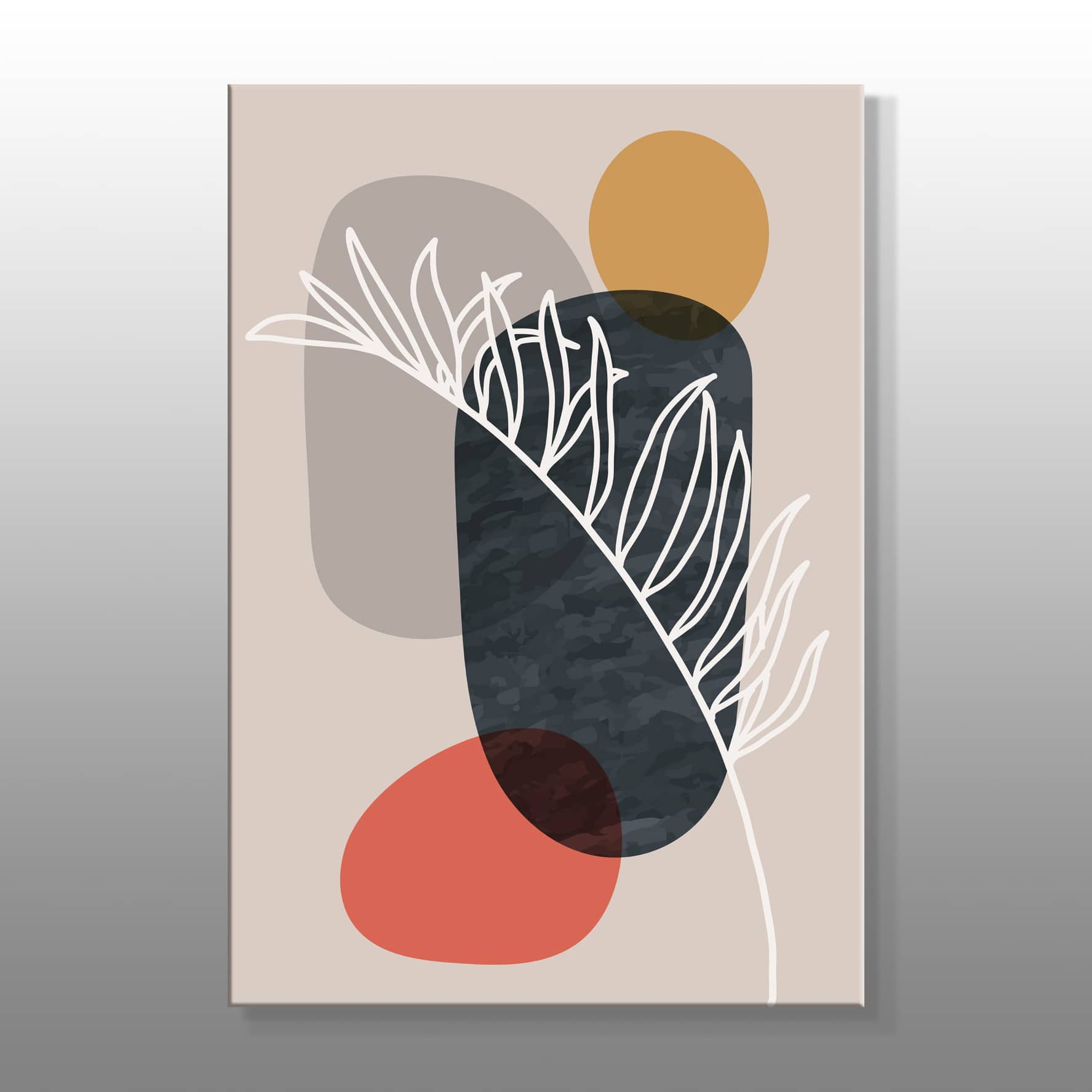 Minimal Renk Alanları Ve Bitki Kanvas Baskı Tablo