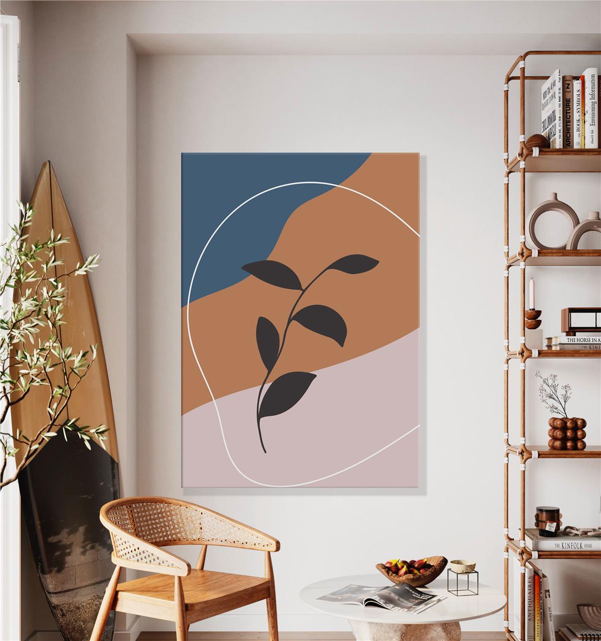 Minimal Renk Tezatları Ve Bitki Kanvas Baskı Tablo