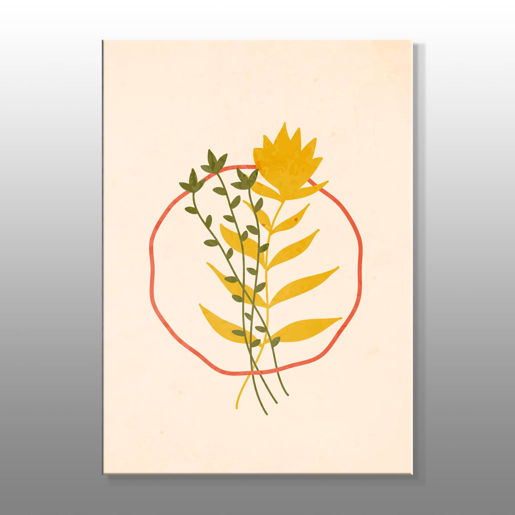Minimal Şekiller Ve Yeşil Sarı Bitkiler Çizimi Kanvas Baskı Tablo