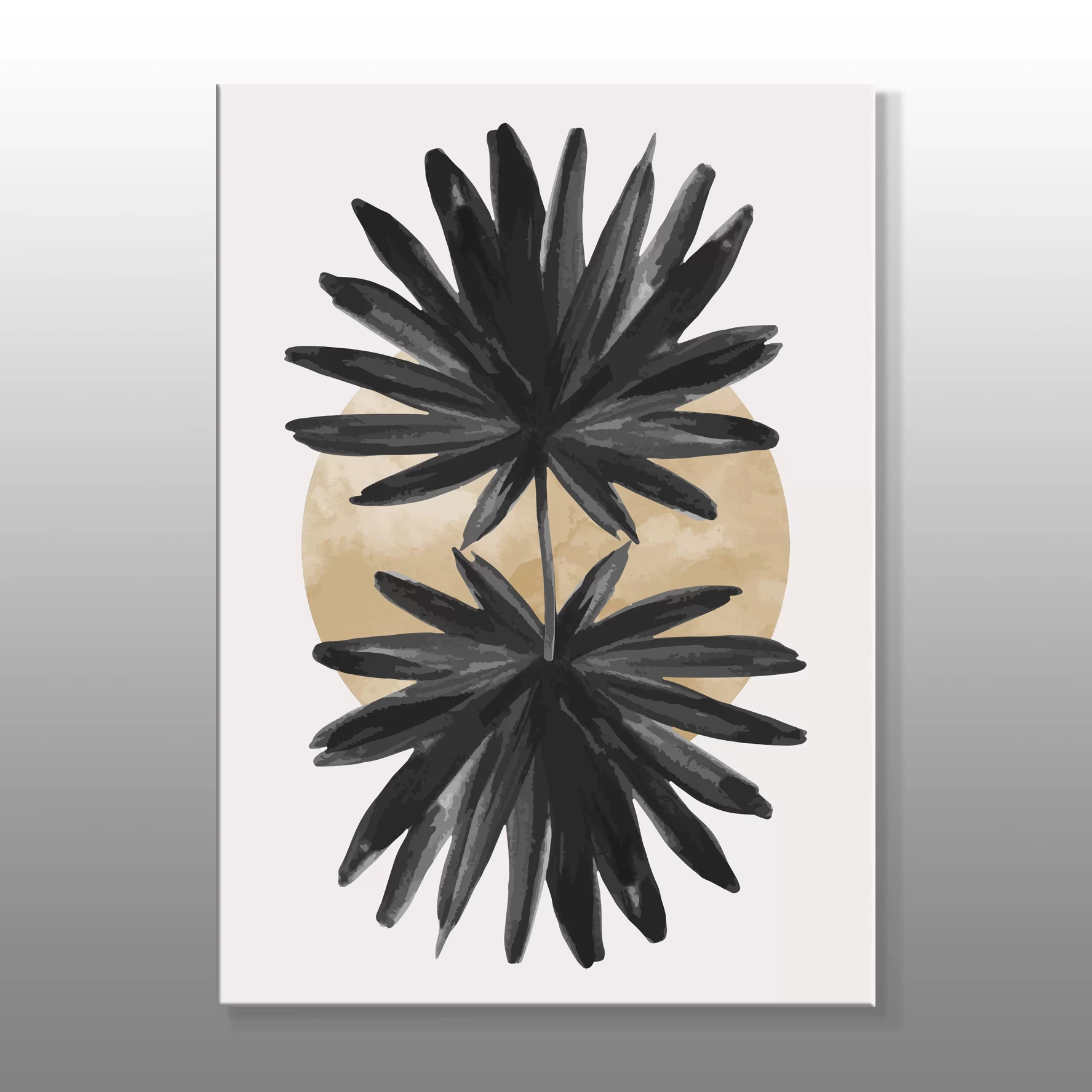 Minimal Siyah Bitki Yaprakları Kanvas Baskı Tablo