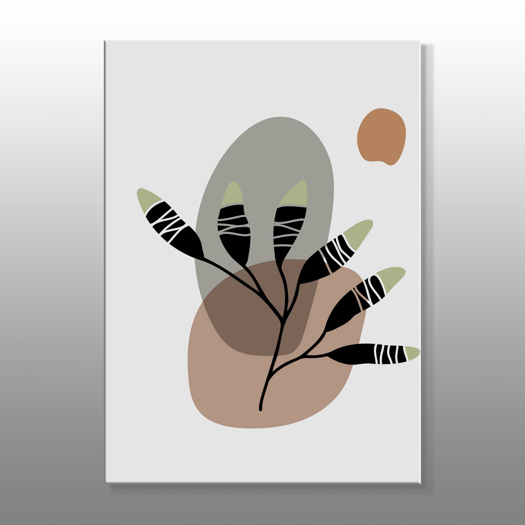 Minimal Uçları Yeşil Yapraklar Çizimi Kanvas Baskı Tablo