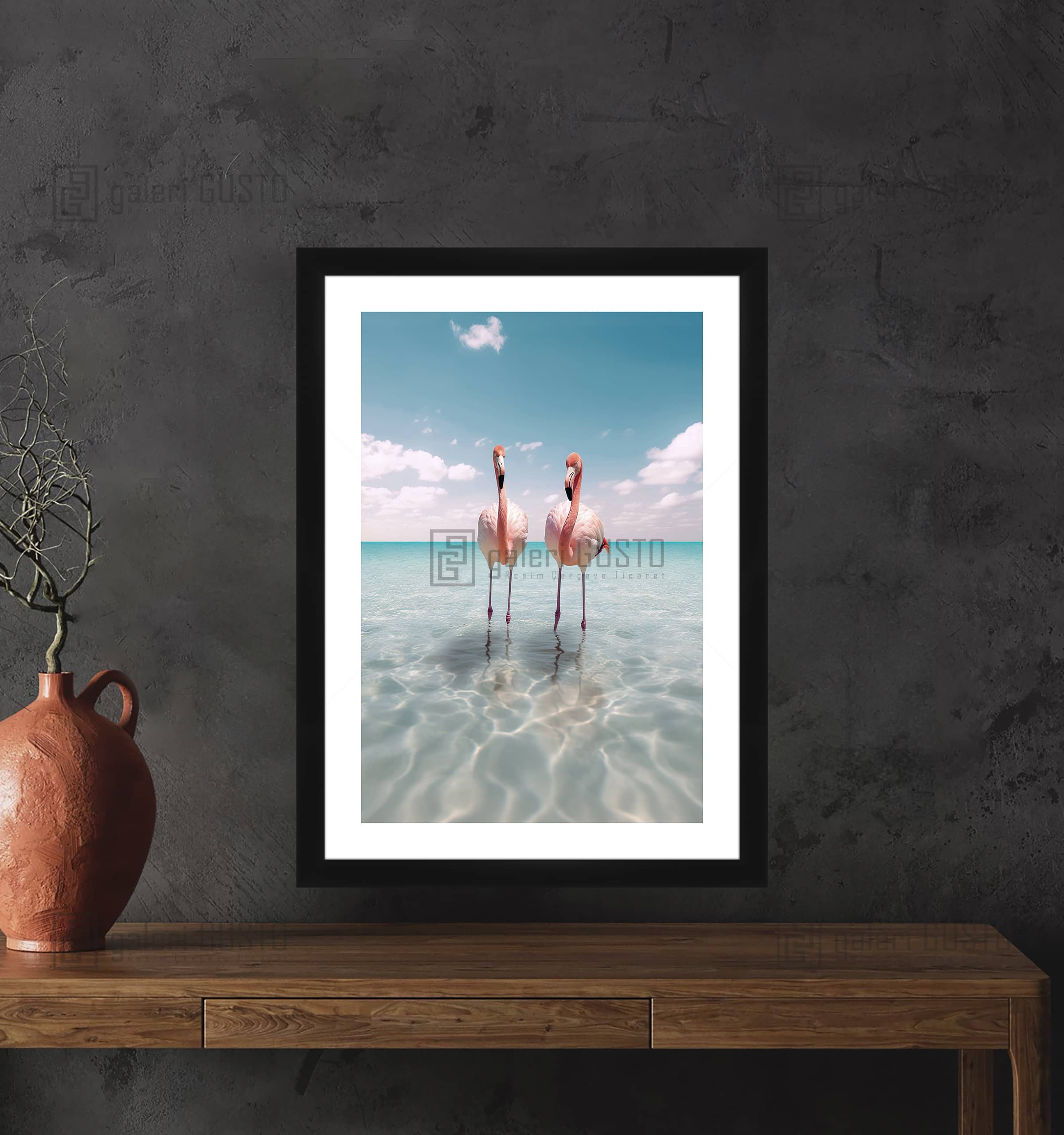 '50 gr/m² Mat Kuşe Kağıda Baskı Yapılmıştır. 2mm Normal Cam 2cm Siyah Lamine Çerçeve