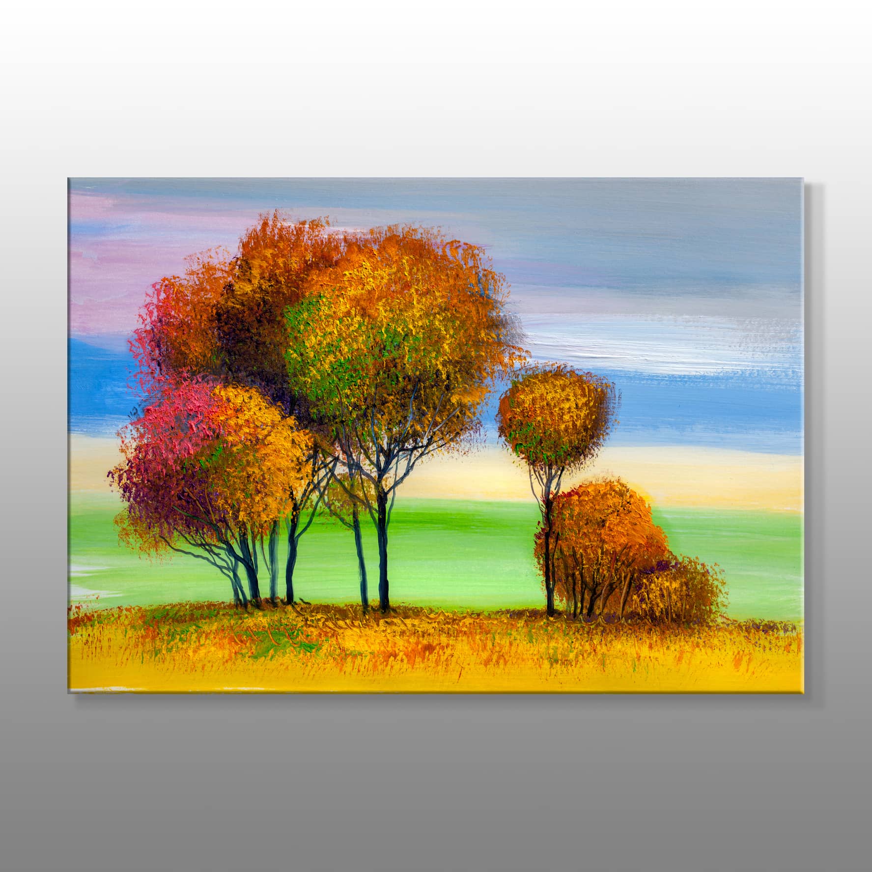 Renkli Açık Gökyüzü ve Ağaçlar Kanvas Baskı Tablo modeli, ferah ve renkli bir gökyüzü ile çevrelenmiş ağaç figürleri ile, izleyiciyi doğanın güzelliklerine davet eder. Canlı mavi, beyaz ve yeşil tonları, doğal bir manzaranın yanı sıra pozitif bir enerji de taşır. Tablonun açık gökyüzü, bulutların hafifçe süzüldüğü ve güneşin parladığı bir atmosfer yaratırken, ağaçlar hem güçlü bir duruş sergiler hem de doğanın sakinliğini simgeler. Bu kompozisyon, doğanın tazeliğini ve canlılığını hissettirirken, izleyicide huzur ve mutluluk uyandırır. Galeri Gusto’nun bu eseri, oturma odası, çalışma alanı veya çocuk odası gibi farklı mekanlarda kullanılabilir ve mekânınıza doğanın huzurunu getirebilir. Aynı zamanda bu eser, doğa severler için mükemmel bir seçenek olup, yaşam alanınıza hem canlılık hem de karakter katma potansiyeline sahiptir.