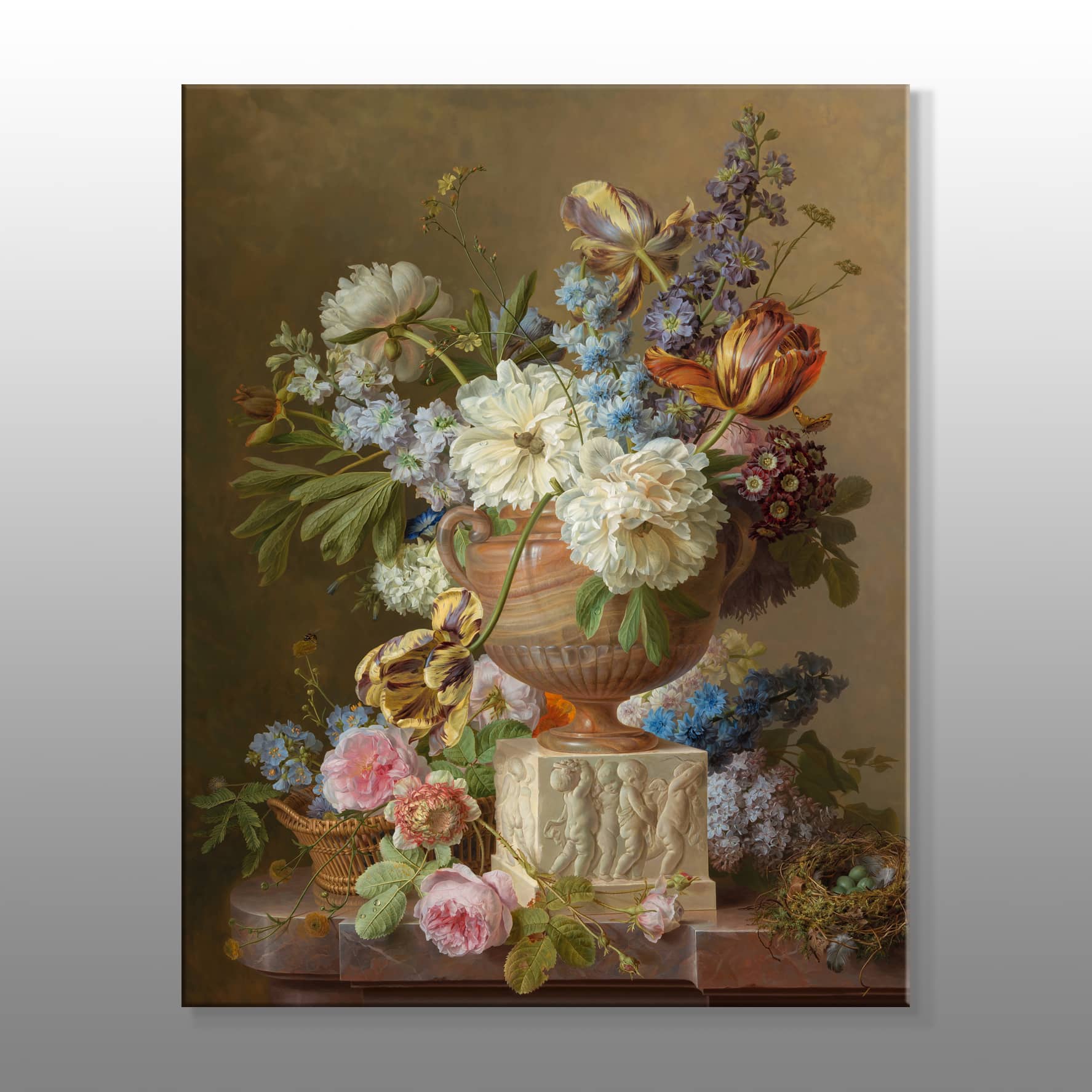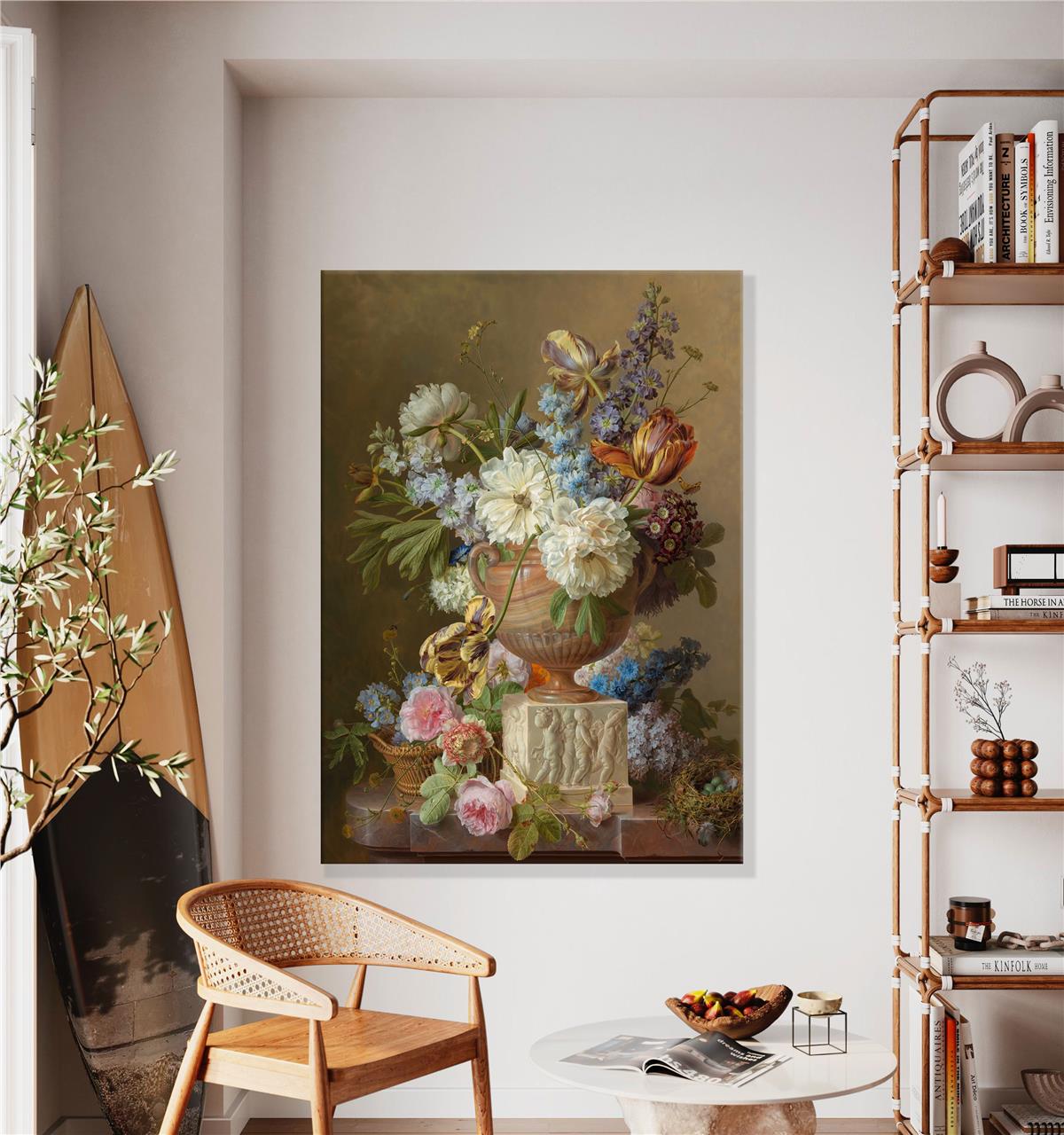 Sanatsal Vazonun İçinde Çeşitli Çiçekler Kanvas Baskı Tablo ürünü, doğanın en göz alıcı detaylarını ve renklerini bir araya getirerek, ev veya ofis dekorunuza zarif bir dokunuş sunuyor. Bu tablo, zengin bir vazo içinde yer alan çeşitli çiçeklerin görkemli bir şekilde sergilendiği bir kompozisyonu yansıtıyor. Her bir çiçek, sanatçının ustalığı ile titizlikle işlenmiş; renkleri, formları ve dokuları ile göz alıcı bir bütünlük oluşturuyor. Tablonun tasarımı, zarif bir vazo ile başlıyor. Vazodaki çiçekler, tazeliği ve doğanın canlılığını simgeliyor. Yumuşak pastel tonları, sıcak sarılar, derin kırmızılar ve canlı morlar, çiçeklerin doğal güzelliklerini vurgularken, bu renk kombinasyonu mekânınıza dinamik bir hava katıyor. Galeri Gusto’nun bu tablosunda her bir çiçek, özenle detaylandırılmış yapraklarıyla birlikte, doğanın sunduğu çeşitliliği gözler önüne seriyor.