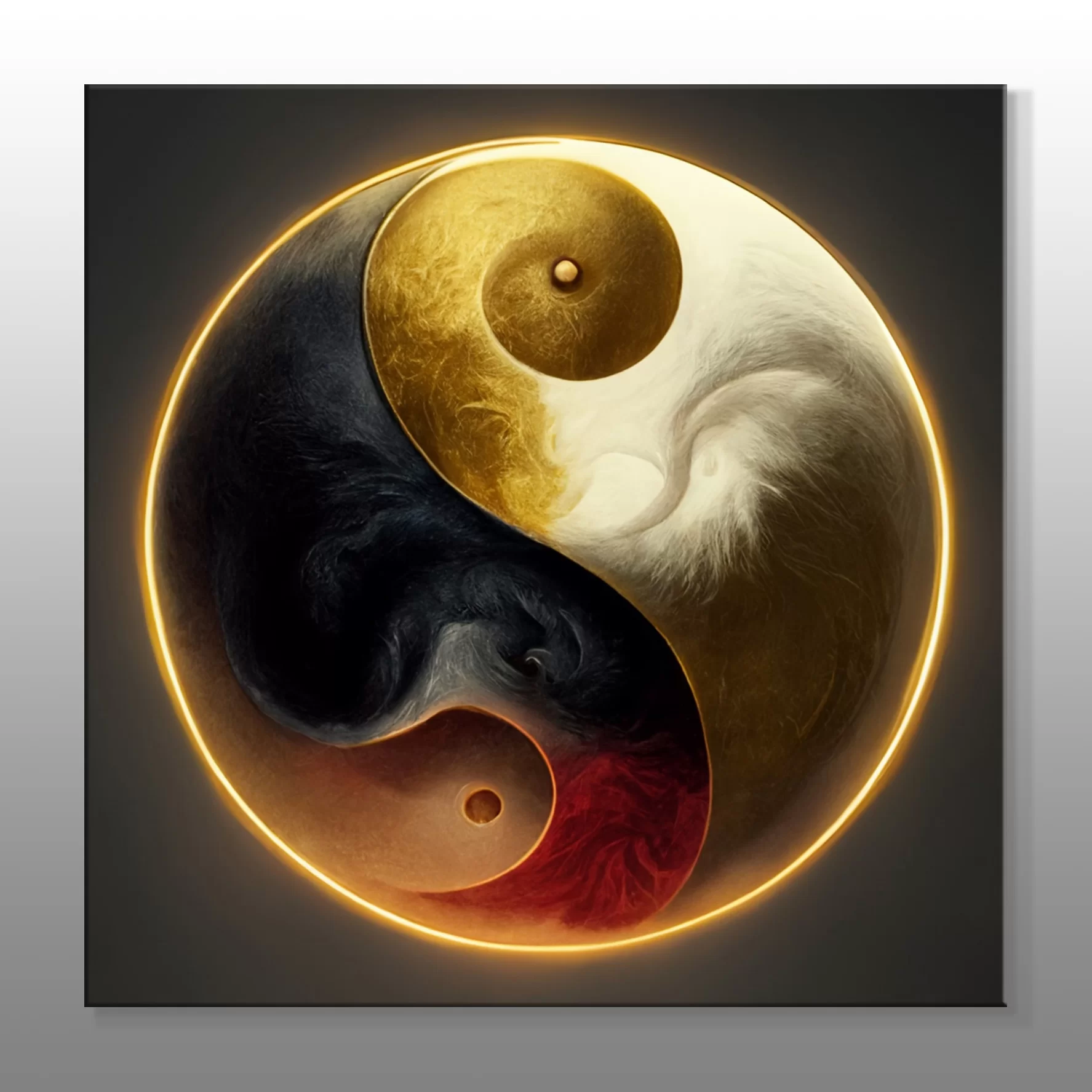 Tablodaki siyah, altın ve beyaz renklerin uyumu, ying yang simgesinin anlamını görsel bir şölene dönüştürüyor. Altının zarafeti ve beyazın saflığı, siyahın derinliği ile birleşerek mekânınıza hem sakinlik hem de enerji katıyor. Soyut çizgiler ve dengeli kompozisyon, her bakışta farklı bir keşif yaşatıyor.