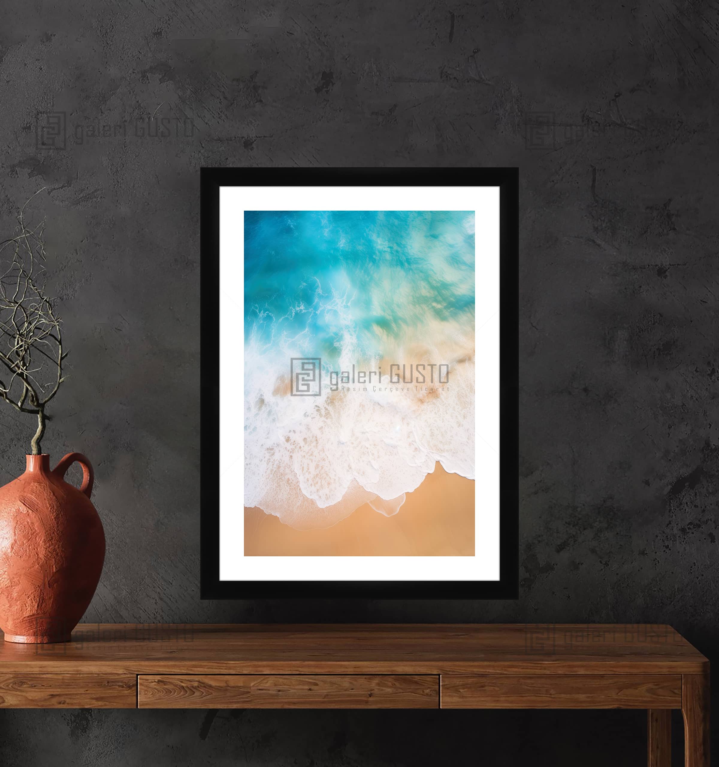 '50 gr/m² Mat Kuşe Kağıda Baskı Yapılmıştır. 2mm Normal Cam 2cm Siyah Lamine Çerçeve