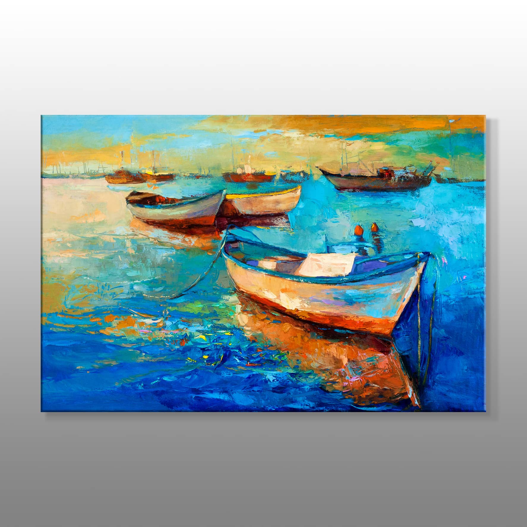 Turuncu Mavi Gökyüzü Altındaki Sandallar Kanvas Baskı Tablo ürünü, turuncu ve mavinin muhteşem uyumunu yansıtan eserlerden birisidir. Mavi bir deniz ve turuncu gökyüzü altında süzülen sandallar, gün batımının büyülü bir anını yansıtır. Gökyüzünün turuncu tonları ve denizin mavi tonları altında, sandalın zarif güzelliği, bu tabloyu tam olarak bir sanat eseri haline getirir. Sandalların dinginliği ve gökyüzünde oluşan renk cümbüşü, bu tabloyu güzelliğin ve huzurun temsili yapar. Galeri Gusto, gökyüzünün canlı renkleri ve sandalların dingin duruşunu yaşam alanlarınıza getirerek bu tabloyu evinizde canlı ve doğal bir parça yapabilir. Hemen sipariş vererek turuncu mavi renkleri arasında süzülen sandalların huzur veren güzelliğini yaşam alanlarınıza taşıyın.