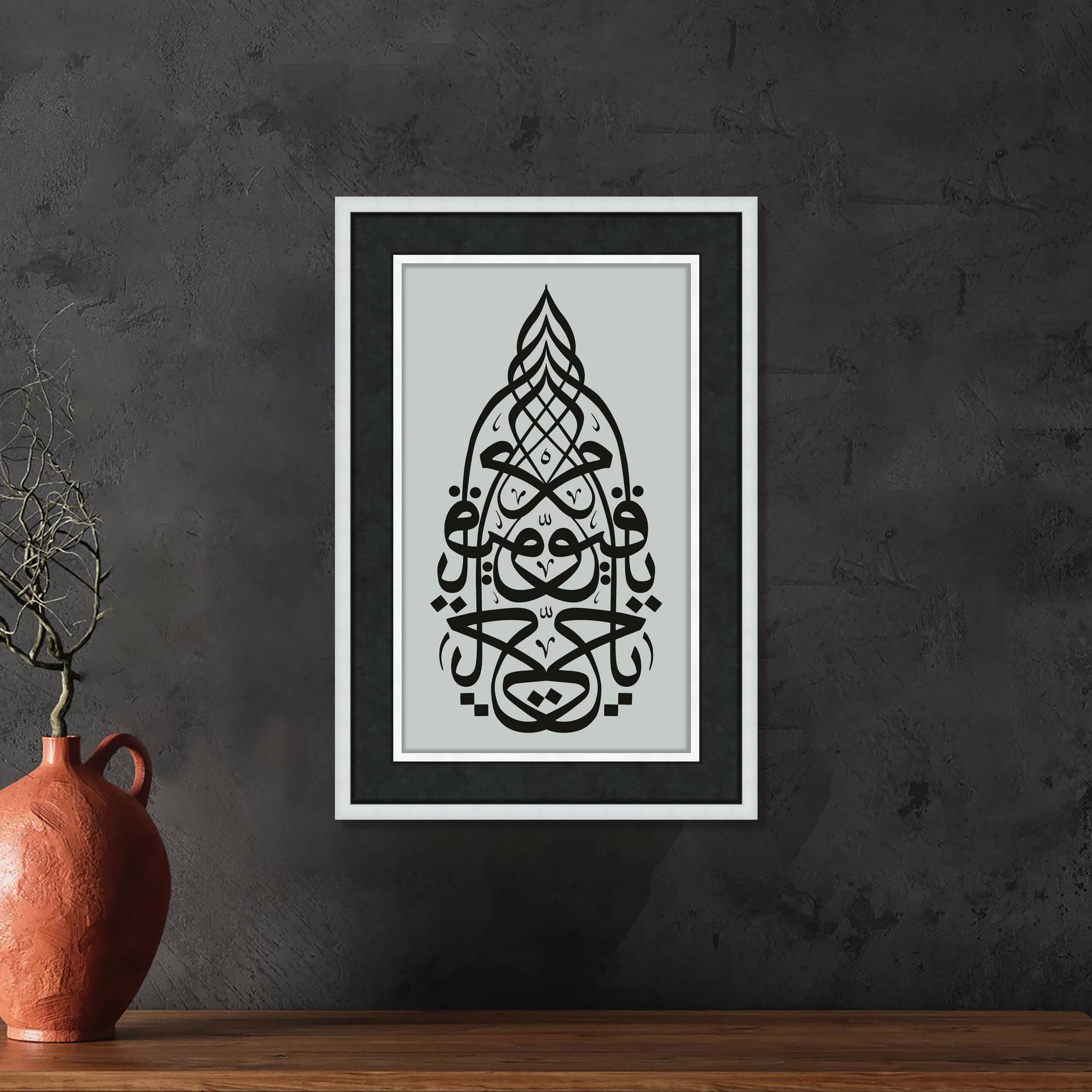Ya Hayyu Ya Kayyum" ifadesi, "Ey diri ve her şeyi ayakta tutan Allah!" anlamına gelir. Anlam Derinliği: Allah’ın Sonsuz Hayatı ve Kudreti: El-Hayy ismi, Allah’ın diri ve ölümsüz olduğunu, O’nun hiçbir zaman yok olmayacağını ve her zaman var olduğunu ifade eder. Bütün varlıkların varoluşu ve hayatı, O’nun "Hayy" sıfatından gelir. Allah’ın Her Şeyi Ayakta Tutan Gücü: El-Kayyum ismi, Allah’ın her şeyi ayakta tuttuğunu, yönettiğini ve düzenlediğini ifade eder. Bütün varlıkların varlıklarını sürdürebilmeleri Allah’ın Kayyum sıfatına bağlıdır. O, tüm evrenin düzenini koruyan, tüm yaratılmışların varlık sebeplerini elinde tutan yegâne kudrettir. Tevhid ve Allah’a Güven: "Ya Hayyu Ya Kayyum" ifadesi, Allah’ın hem diri (hayy) hem de her şeyi ayakta tutan (kayyum) olduğunu bilerek, O’na mutlak güveni ve teslimiyeti ifade eder. Müslümanlar, her türlü zorluk ve ihtiyaç anında bu isimleri zikrederek Allah’tan yardım ve destek talep ederler. Kur'an-ı Kerim'de Geçişi: Ayetü'l-Kürsi: Allah’ın "Hayy" ve "Kayyum" sıfatları, Kur'an-ı Kerim’in en büyük ayetlerinden biri olan Ayetü'l-Kürsi’de (Bakara Suresi, 255. Ayet) geçer: "Allah, O'ndan başka hiçbir ilah yoktur; Hayy’dır, Kayyum’dur (her şeyi ayakta tutan, koruyan ve yöneten)..." Ali İmran Suresi 2. Ayet: "Allah, kendisinden başka hiçbir ilah olmayandır. Hayy’dır, Kayyum’dur." Bu ayetlerde Allah’ın diri olduğu ve her şeyi koruyup gözettiği belirtilir ve bu iki sıfatın büyüklüğü vurgulanır. Dua ve Zikirlerde Kullanımı: Peygamberimizin (s.a.v.) Dualarında: Hz. Muhammed (s.a.v.), sık sık "Ya Hayyu Ya Kayyum" ifadesini dualarında kullanmıştır. Örneğin, zor anlarda ve sıkıntılı durumlarda bu ifadeyi zikretmiştir. Bir hadisinde şöyle buyurur: "Ya Hayyu Ya Kayyum, rahmetinle senden yardım istiyorum." (Tirmizi) Kalp Huzuru ve İstikrar: Bu zikir, kalp huzurunu, sükuneti ve Allah’a tam bir güveni ifade eder. Müslümanlar, bu zikri tekrarlayarak Allah’tan yardım, istikrar, güç ve destek dilerler. Manevi ve Ruhsal Etkisi: Allah’a Tam Güven ve Teslimiyet: "Ya Hayyu Ya Kayyum" ifadesi, Allah’ın her zaman var olduğunu ve her şeyi kontrol ettiğini bilerek O’na tam bir teslimiyeti ifade eder. Ruhsal Güç ve Dayanıklılık: Bu zikri tekrarlamak, zor zamanlarda ruhsal güç ve dayanıklılık sağlar. Müslümanlar, bu isimleri zikrederek Allah’ın sonsuz kudretine ve yardımına olan güvenlerini ifade ederler. Sonuç: "Ya Hayyu Ya Kayyum", Allah’ın diri ve her şeyi ayakta tutan olduğunu ifade eden iki güzel isimden oluşan bir zikirdir. Bu ifadeyi zikretmek, Allah’ın kudretine, varlığına, korumasına ve yardıma olan güveni ve teslimiyeti güçlendirir. Müslümanlar için zor zamanlarda ve ihtiyaç anlarında sıkça başvurulan bu dua ve zikir, Allah’a olan bağlılığı ve güveni pekiştiren derin bir anlam taşır. Çerçeve , Lamine Çerçeveden üretilmiştir. Çift katmanlı çerçeve kırık beyaz renginde, derinlikli çeçreve kullanılmıştır, Baskı, Hahnemühle, Stüdio Enhenced 190 gr /m² Kağıt Kullanılmıştır. Paspartu; 6 cm Siyah İthal 17 micron kağıt kullanılmıştır. Cam, 2 mm Normal Cam Kullanılmıştır.