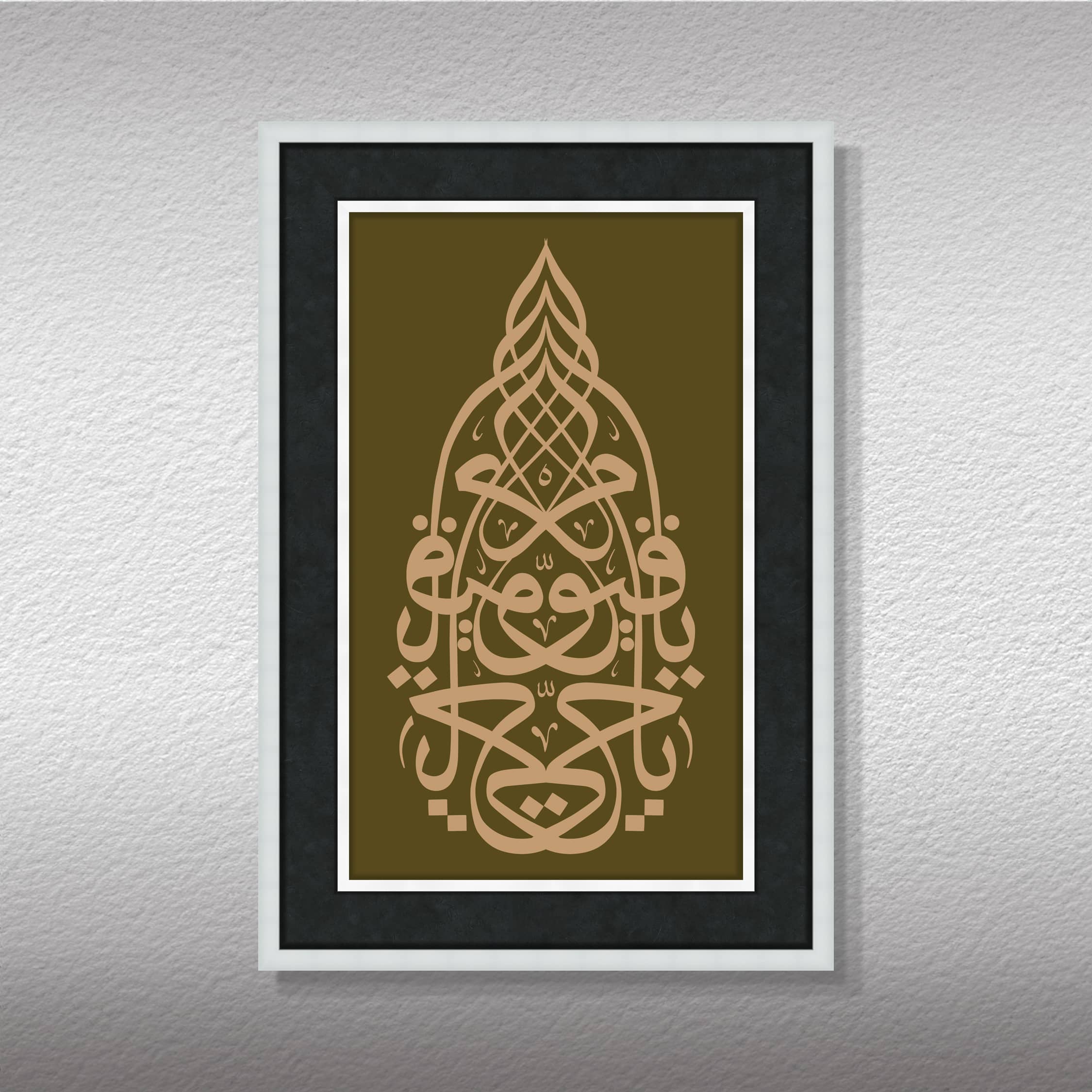 Ya Hayyu Ya Kayyum" ifadesi, "Ey diri ve her şeyi ayakta tutan Allah!" anlamına gelir. Anlam Derinliği: Allah’ın Sonsuz Hayatı ve Kudreti: El-Hayy ismi, Allah’ın diri ve ölümsüz olduğunu, O’nun hiçbir zaman yok olmayacağını ve her zaman var olduğunu ifade eder. Bütün varlıkların varoluşu ve hayatı, O’nun "Hayy" sıfatından gelir. Allah’ın Her Şeyi Ayakta Tutan Gücü: El-Kayyum ismi, Allah’ın her şeyi ayakta tuttuğunu, yönettiğini ve düzenlediğini ifade eder. Bütün varlıkların varlıklarını sürdürebilmeleri Allah’ın Kayyum sıfatına bağlıdır. O, tüm evrenin düzenini koruyan, tüm yaratılmışların varlık sebeplerini elinde tutan yegâne kudrettir. Tevhid ve Allah’a Güven: "Ya Hayyu Ya Kayyum" ifadesi, Allah’ın hem diri (hayy) hem de her şeyi ayakta tutan (kayyum) olduğunu bilerek, O’na mutlak güveni ve teslimiyeti ifade eder. Müslümanlar, her türlü zorluk ve ihtiyaç anında bu isimleri zikrederek Allah’tan yardım ve destek talep ederler. Kur'an-ı Kerim'de Geçişi: Ayetü'l-Kürsi: Allah’ın "Hayy" ve "Kayyum" sıfatları, Kur'an-ı Kerim’in en büyük ayetlerinden biri olan Ayetü'l-Kürsi’de (Bakara Suresi, 255. Ayet) geçer: "Allah, O'ndan başka hiçbir ilah yoktur; Hayy’dır, Kayyum’dur (her şeyi ayakta tutan, koruyan ve yöneten)..." Ali İmran Suresi 2. Ayet: "Allah, kendisinden başka hiçbir ilah olmayandır. Hayy’dır, Kayyum’dur." Bu ayetlerde Allah’ın diri olduğu ve her şeyi koruyup gözettiği belirtilir ve bu iki sıfatın büyüklüğü vurgulanır. Dua ve Zikirlerde Kullanımı: Peygamberimizin (s.a.v.) Dualarında: Hz. Muhammed (s.a.v.), sık sık "Ya Hayyu Ya Kayyum" ifadesini dualarında kullanmıştır. Örneğin, zor anlarda ve sıkıntılı durumlarda bu ifadeyi zikretmiştir. Bir hadisinde şöyle buyurur: "Ya Hayyu Ya Kayyum, rahmetinle senden yardım istiyorum." (Tirmizi) Kalp Huzuru ve İstikrar: Bu zikir, kalp huzurunu, sükuneti ve Allah’a tam bir güveni ifade eder. Müslümanlar, bu zikri tekrarlayarak Allah’tan yardım, istikrar, güç ve destek dilerler. Manevi ve Ruhsal Etkisi: Allah’a Tam Güven ve Teslimiyet: "Ya Hayyu Ya Kayyum" ifadesi, Allah’ın her zaman var olduğunu ve her şeyi kontrol ettiğini bilerek O’na tam bir teslimiyeti ifade eder. Ruhsal Güç ve Dayanıklılık: Bu zikri tekrarlamak, zor zamanlarda ruhsal güç ve dayanıklılık sağlar. Müslümanlar, bu isimleri zikrederek Allah’ın sonsuz kudretine ve yardımına olan güvenlerini ifade ederler. Sonuç: "Ya Hayyu Ya Kayyum", Allah’ın diri ve her şeyi ayakta tutan olduğunu ifade eden iki güzel isimden oluşan bir zikirdir. Bu ifadeyi zikretmek, Allah’ın kudretine, varlığına, korumasına ve yardıma olan güveni ve teslimiyeti güçlendirir. Müslümanlar için zor zamanlarda ve ihtiyaç anlarında sıkça başvurulan bu dua ve zikir, Allah’a olan bağlılığı ve güveni pekiştiren derin bir anlam taşır. Çerçeve , Lamine Çerçeveden üretilmiştir. Çift katmanlı çerçeve kırık beyaz renginde, derinlikli çeçreve kullanılmıştır, Baskı, Hahnemühle, Stüdio Enhenced 190 gr /m² Kağıt Kullanılmıştır. Paspartu; 6 cm Siyah İthal 17 micron kağıt kullanılmıştır. Cam, 2 mm Normal Cam Kullanılmıştır.