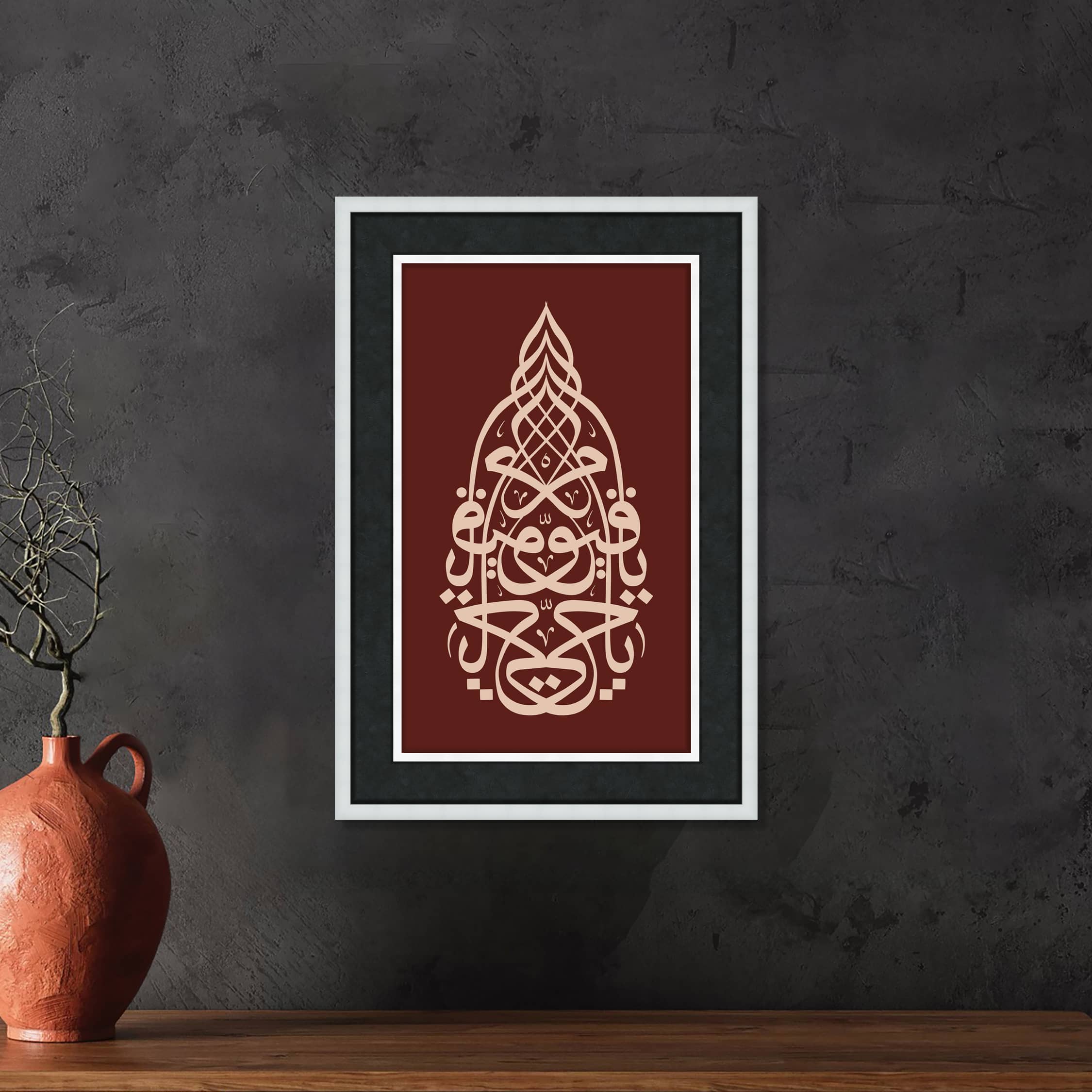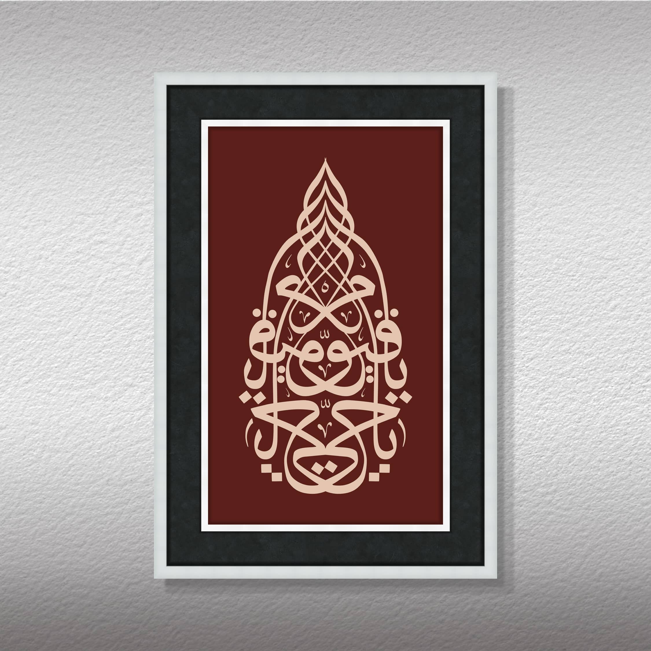 Ya Hayyu Ya Kayyum" ifadesi, "Ey diri ve her şeyi ayakta tutan Allah!" anlamına gelir. Anlam Derinliği: Allah’ın Sonsuz Hayatı ve Kudreti: El-Hayy ismi, Allah’ın diri ve ölümsüz olduğunu, O’nun hiçbir zaman yok olmayacağını ve her zaman var olduğunu ifade eder. Bütün varlıkların varoluşu ve hayatı, O’nun "Hayy" sıfatından gelir. Allah’ın Her Şeyi Ayakta Tutan Gücü: El-Kayyum ismi, Allah’ın her şeyi ayakta tuttuğunu, yönettiğini ve düzenlediğini ifade eder. Bütün varlıkların varlıklarını sürdürebilmeleri Allah’ın Kayyum sıfatına bağlıdır. O, tüm evrenin düzenini koruyan, tüm yaratılmışların varlık sebeplerini elinde tutan yegâne kudrettir. Tevhid ve Allah’a Güven: "Ya Hayyu Ya Kayyum" ifadesi, Allah’ın hem diri (hayy) hem de her şeyi ayakta tutan (kayyum) olduğunu bilerek, O’na mutlak güveni ve teslimiyeti ifade eder. Müslümanlar, her türlü zorluk ve ihtiyaç anında bu isimleri zikrederek Allah’tan yardım ve destek talep ederler. Kur'an-ı Kerim'de Geçişi: Ayetü'l-Kürsi: Allah’ın "Hayy" ve "Kayyum" sıfatları, Kur'an-ı Kerim’in en büyük ayetlerinden biri olan Ayetü'l-Kürsi’de (Bakara Suresi, 255. Ayet) geçer: "Allah, O'ndan başka hiçbir ilah yoktur; Hayy’dır, Kayyum’dur (her şeyi ayakta tutan, koruyan ve yöneten)..." Ali İmran Suresi 2. Ayet: "Allah, kendisinden başka hiçbir ilah olmayandır. Hayy’dır, Kayyum’dur." Bu ayetlerde Allah’ın diri olduğu ve her şeyi koruyup gözettiği belirtilir ve bu iki sıfatın büyüklüğü vurgulanır. Dua ve Zikirlerde Kullanımı: Peygamberimizin (s.a.v.) Dualarında: Hz. Muhammed (s.a.v.), sık sık "Ya Hayyu Ya Kayyum" ifadesini dualarında kullanmıştır. Örneğin, zor anlarda ve sıkıntılı durumlarda bu ifadeyi zikretmiştir. Bir hadisinde şöyle buyurur: "Ya Hayyu Ya Kayyum, rahmetinle senden yardım istiyorum." (Tirmizi) Kalp Huzuru ve İstikrar: Bu zikir, kalp huzurunu, sükuneti ve Allah’a tam bir güveni ifade eder. Müslümanlar, bu zikri tekrarlayarak Allah’tan yardım, istikrar, güç ve destek dilerler. Manevi ve Ruhsal Etkisi: Allah’a Tam Güven ve Teslimiyet: "Ya Hayyu Ya Kayyum" ifadesi, Allah’ın her zaman var olduğunu ve her şeyi kontrol ettiğini bilerek O’na tam bir teslimiyeti ifade eder. Ruhsal Güç ve Dayanıklılık: Bu zikri tekrarlamak, zor zamanlarda ruhsal güç ve dayanıklılık sağlar. Müslümanlar, bu isimleri zikrederek Allah’ın sonsuz kudretine ve yardımına olan güvenlerini ifade ederler. Sonuç: "Ya Hayyu Ya Kayyum", Allah’ın diri ve her şeyi ayakta tutan olduğunu ifade eden iki güzel isimden oluşan bir zikirdir. Bu ifadeyi zikretmek, Allah’ın kudretine, varlığına, korumasına ve yardıma olan güveni ve teslimiyeti güçlendirir. Müslümanlar için zor zamanlarda ve ihtiyaç anlarında sıkça başvurulan bu dua ve zikir, Allah’a olan bağlılığı ve güveni pekiştiren derin bir anlam taşır. Çerçeve , Lamine Çerçeveden üretilmiştir. Çift katmanlı çerçeve kırık beyaz renginde, derinlikli çeçreve kullanılmıştır, Baskı, Hahnemühle, Stüdio Enhenced 190 gr /m² Kağıt Kullanılmıştır. Paspartu; 6 cm Siyah İthal 17 micron kağıt kullanılmıştır. Cam, 2 mm Normal Cam Kullanılmıştır.