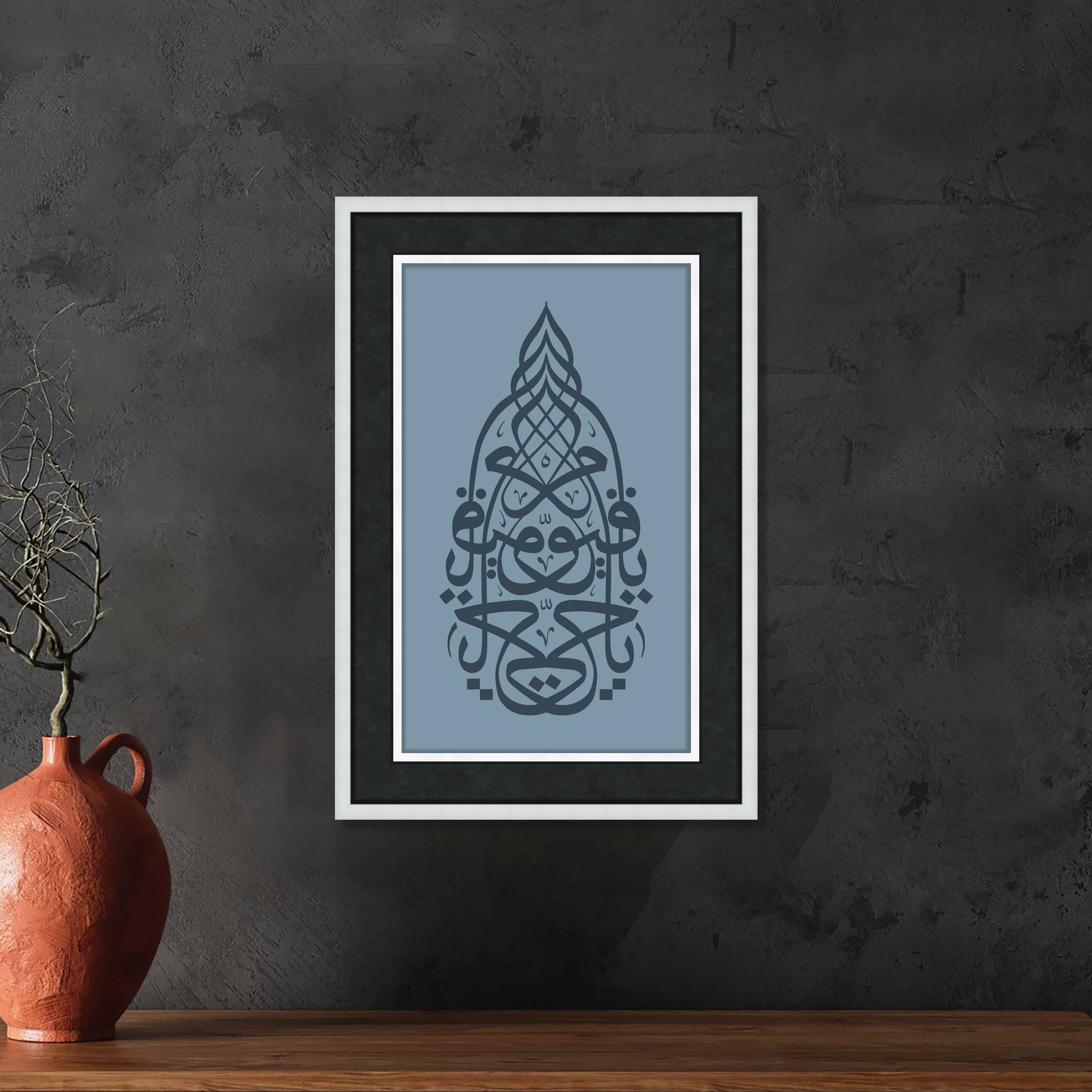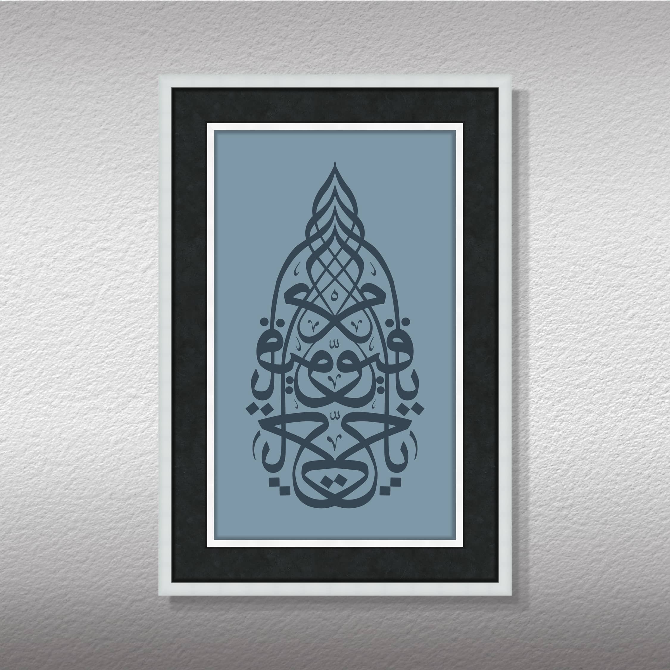 Ya Hayyu Ya Kayyum" ifadesi, "Ey diri ve her şeyi ayakta tutan Allah!" anlamına gelir. Anlam Derinliği: Allah’ın Sonsuz Hayatı ve Kudreti: El-Hayy ismi, Allah’ın diri ve ölümsüz olduğunu, O’nun hiçbir zaman yok olmayacağını ve her zaman var olduğunu ifade eder. Bütün varlıkların varoluşu ve hayatı, O’nun "Hayy" sıfatından gelir. Allah’ın Her Şeyi Ayakta Tutan Gücü: El-Kayyum ismi, Allah’ın her şeyi ayakta tuttuğunu, yönettiğini ve düzenlediğini ifade eder. Bütün varlıkların varlıklarını sürdürebilmeleri Allah’ın Kayyum sıfatına bağlıdır. O, tüm evrenin düzenini koruyan, tüm yaratılmışların varlık sebeplerini elinde tutan yegâne kudrettir. Tevhid ve Allah’a Güven: "Ya Hayyu Ya Kayyum" ifadesi, Allah’ın hem diri (hayy) hem de her şeyi ayakta tutan (kayyum) olduğunu bilerek, O’na mutlak güveni ve teslimiyeti ifade eder. Müslümanlar, her türlü zorluk ve ihtiyaç anında bu isimleri zikrederek Allah’tan yardım ve destek talep ederler. Kur'an-ı Kerim'de Geçişi: Ayetü'l-Kürsi: Allah’ın "Hayy" ve "Kayyum" sıfatları, Kur'an-ı Kerim’in en büyük ayetlerinden biri olan Ayetü'l-Kürsi’de (Bakara Suresi, 255. Ayet) geçer: "Allah, O'ndan başka hiçbir ilah yoktur; Hayy’dır, Kayyum’dur (her şeyi ayakta tutan, koruyan ve yöneten)..." Ali İmran Suresi 2. Ayet: "Allah, kendisinden başka hiçbir ilah olmayandır. Hayy’dır, Kayyum’dur." Bu ayetlerde Allah’ın diri olduğu ve her şeyi koruyup gözettiği belirtilir ve bu iki sıfatın büyüklüğü vurgulanır. Dua ve Zikirlerde Kullanımı: Peygamberimizin (s.a.v.) Dualarında: Hz. Muhammed (s.a.v.), sık sık "Ya Hayyu Ya Kayyum" ifadesini dualarında kullanmıştır. Örneğin, zor anlarda ve sıkıntılı durumlarda bu ifadeyi zikretmiştir. Bir hadisinde şöyle buyurur: "Ya Hayyu Ya Kayyum, rahmetinle senden yardım istiyorum." (Tirmizi) Kalp Huzuru ve İstikrar: Bu zikir, kalp huzurunu, sükuneti ve Allah’a tam bir güveni ifade eder. Müslümanlar, bu zikri tekrarlayarak Allah’tan yardım, istikrar, güç ve destek dilerler. Manevi ve Ruhsal Etkisi: Allah’a Tam Güven ve Teslimiyet: "Ya Hayyu Ya Kayyum" ifadesi, Allah’ın her zaman var olduğunu ve her şeyi kontrol ettiğini bilerek O’na tam bir teslimiyeti ifade eder. Ruhsal Güç ve Dayanıklılık: Bu zikri tekrarlamak, zor zamanlarda ruhsal güç ve dayanıklılık sağlar. Müslümanlar, bu isimleri zikrederek Allah’ın sonsuz kudretine ve yardımına olan güvenlerini ifade ederler. Sonuç: "Ya Hayyu Ya Kayyum", Allah’ın diri ve her şeyi ayakta tutan olduğunu ifade eden iki güzel isimden oluşan bir zikirdir. Bu ifadeyi zikretmek, Allah’ın kudretine, varlığına, korumasına ve yardıma olan güveni ve teslimiyeti güçlendirir. Müslümanlar için zor zamanlarda ve ihtiyaç anlarında sıkça başvurulan bu dua ve zikir, Allah’a olan bağlılığı ve güveni pekiştiren derin bir anlam taşır. Çerçeve , Lamine Çerçeveden üretilmiştir. Çift katmanlı çerçeve kırık beyaz renginde, derinlikli çeçreve kullanılmıştır, Baskı, Hahnemühle, Stüdio Enhenced 190 gr /m² Kağıt Kullanılmıştır. Paspartu; 6 cm Siyah İthal 17 micron kağıt kullanılmıştır. Cam, 2 mm Normal Cam Kullanılmıştır.
